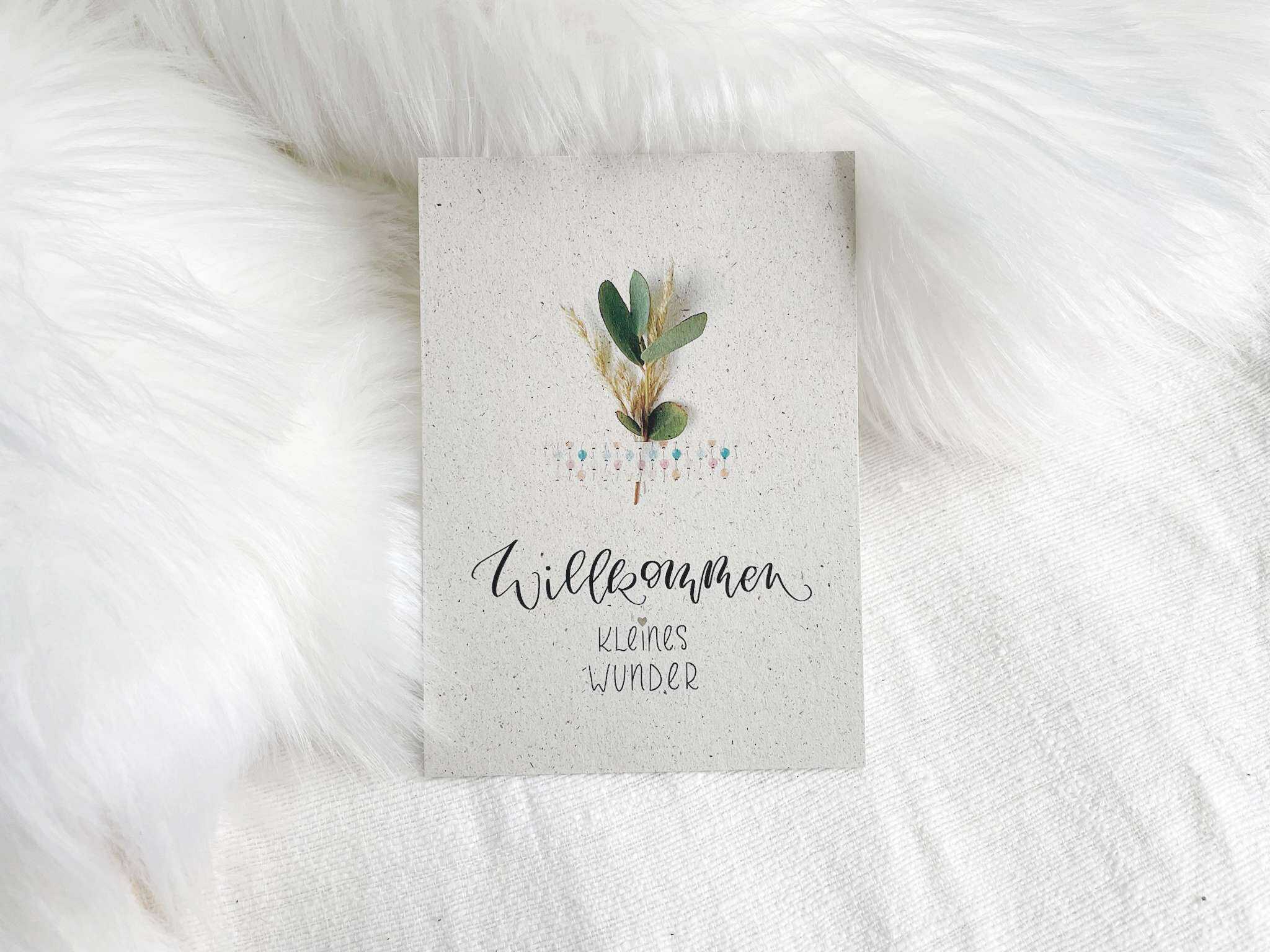 3x Willkommen kleines Wunder | Postkarte aus Graspapier | Karte zur Geburt | Babykarte