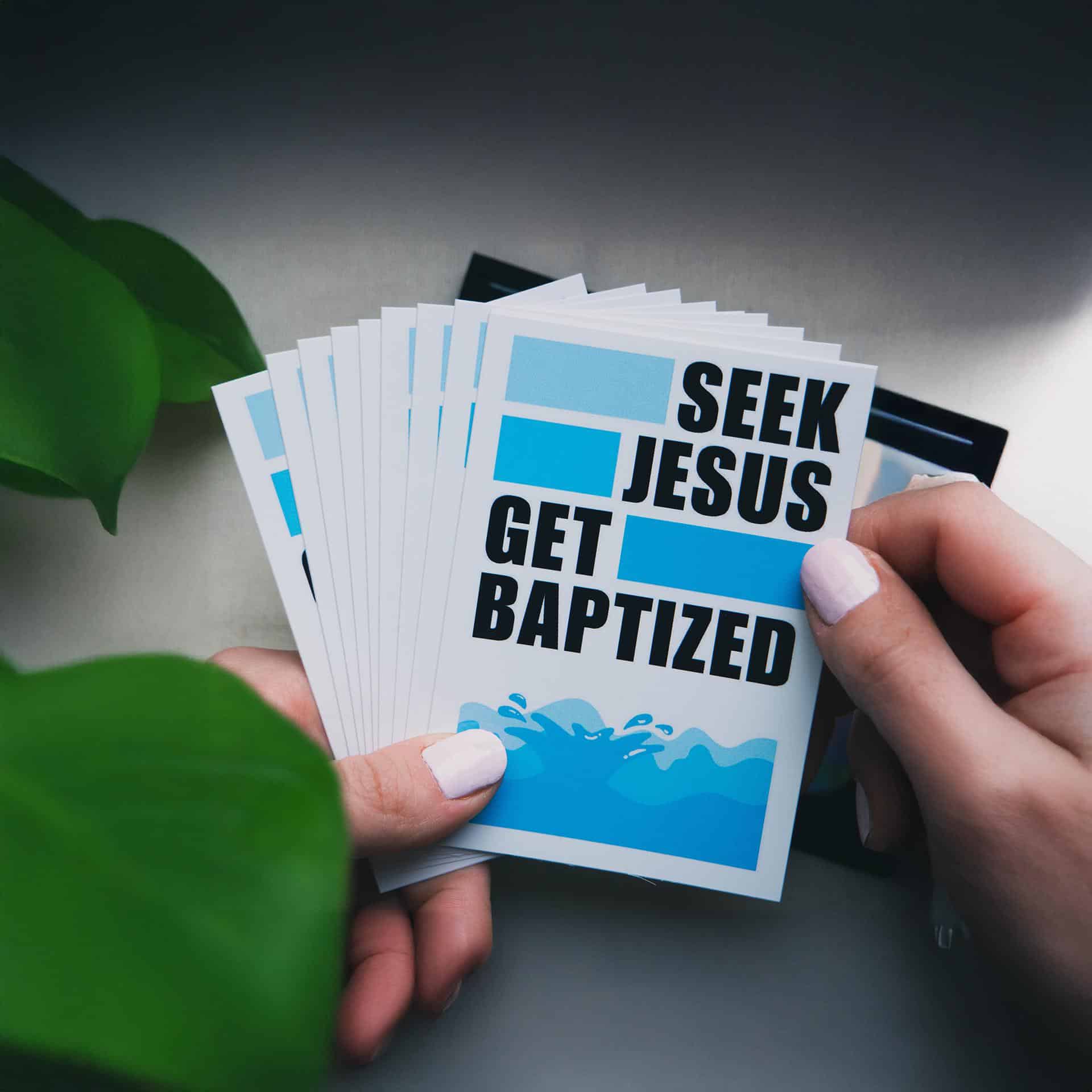 Seek Jesus, get baptized. Unsere GET BAPTIZED Sticker bringen die zentrale Botschaft des Glaubens direkt und klar auf den Punkt. Sie laden zum Nachdenken ein, machen neugierig und setzen ein sichtbares Statement im Alltag.