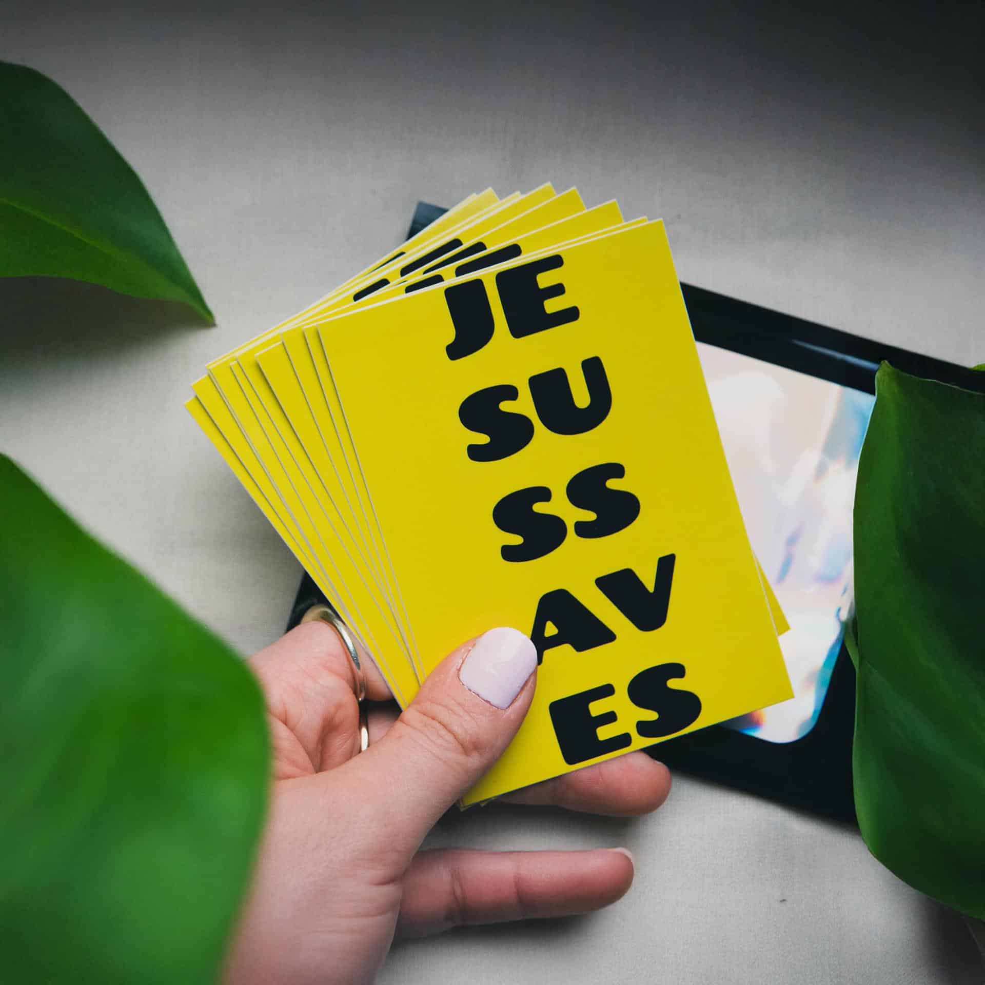 Unsere JESUS SAVES Sticker bringen die zentrale Botschaft des Glaubens direkt und klar auf den Punkt. Sie laden zum Nachdenken ein, machen neugierig und setzen ein sichtbares Statement im Alltag.
