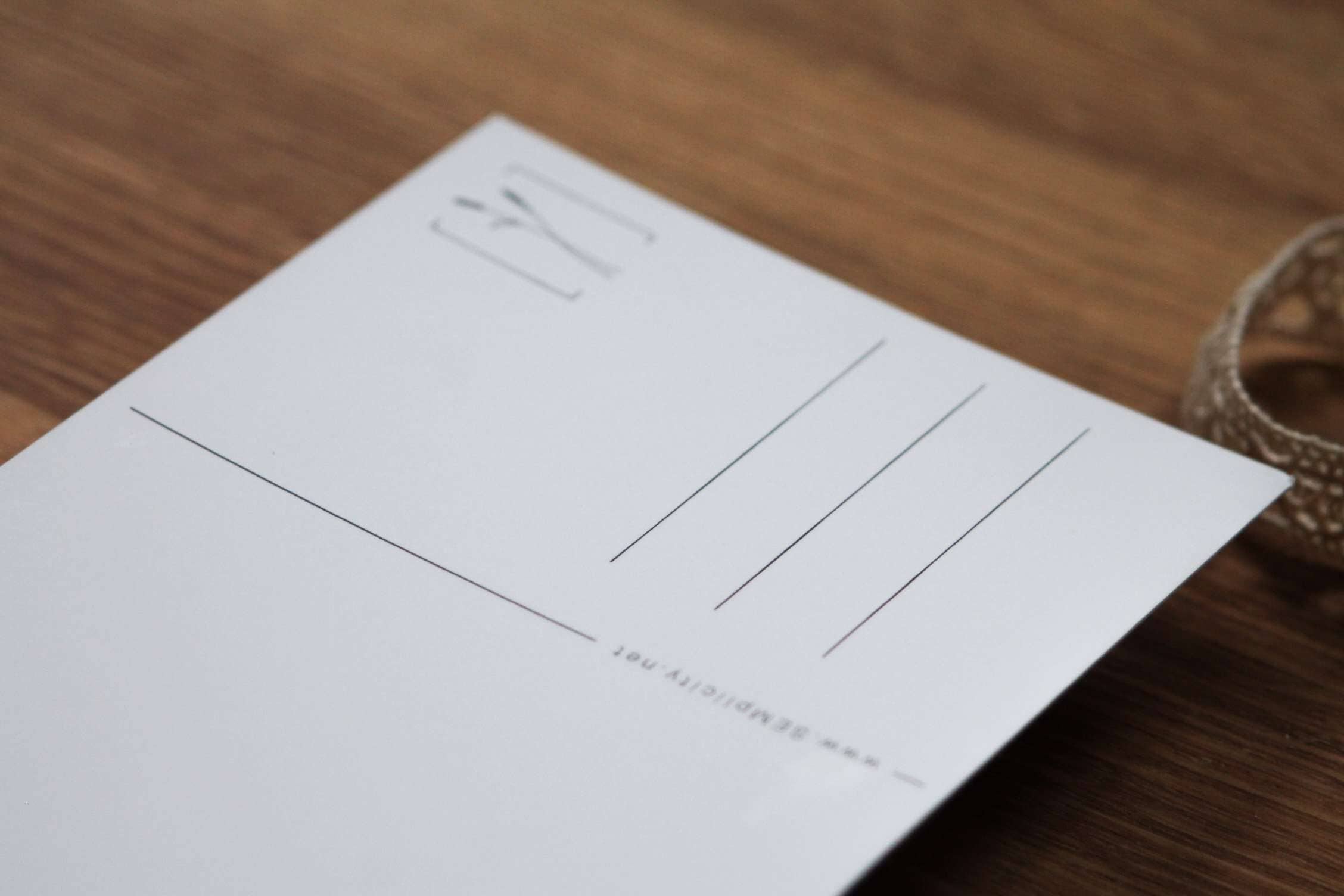 Rückseite: “Postkarte” (mit Hilfslinien um Freude direkt zu versenden)