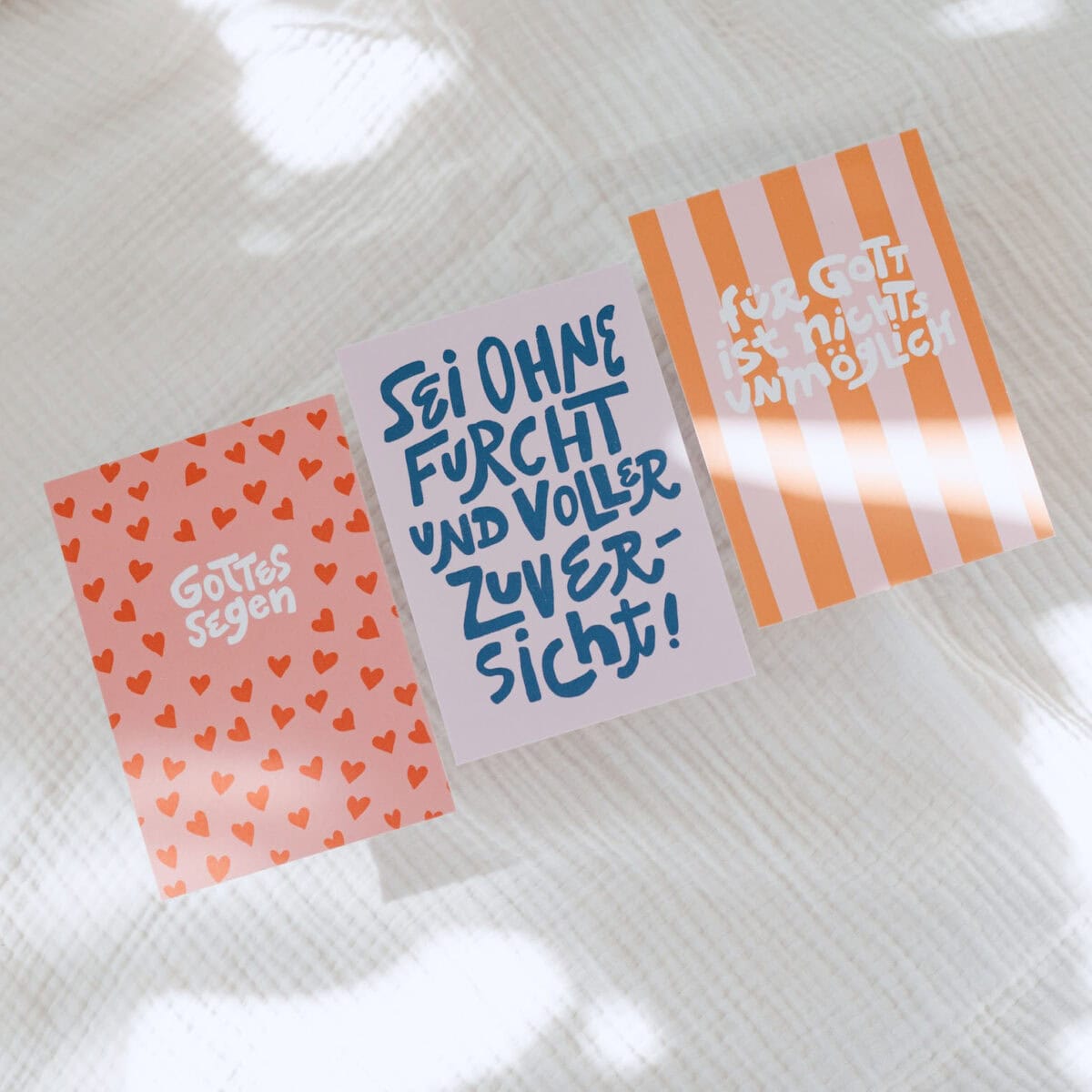 Dieses Set enthält drei hochwertige Postkarten mit ermutigenden, christlichen Botschaften auf Deutsch: