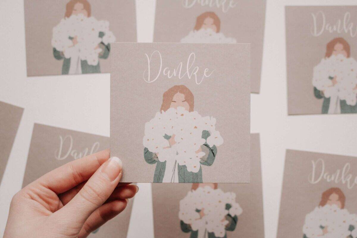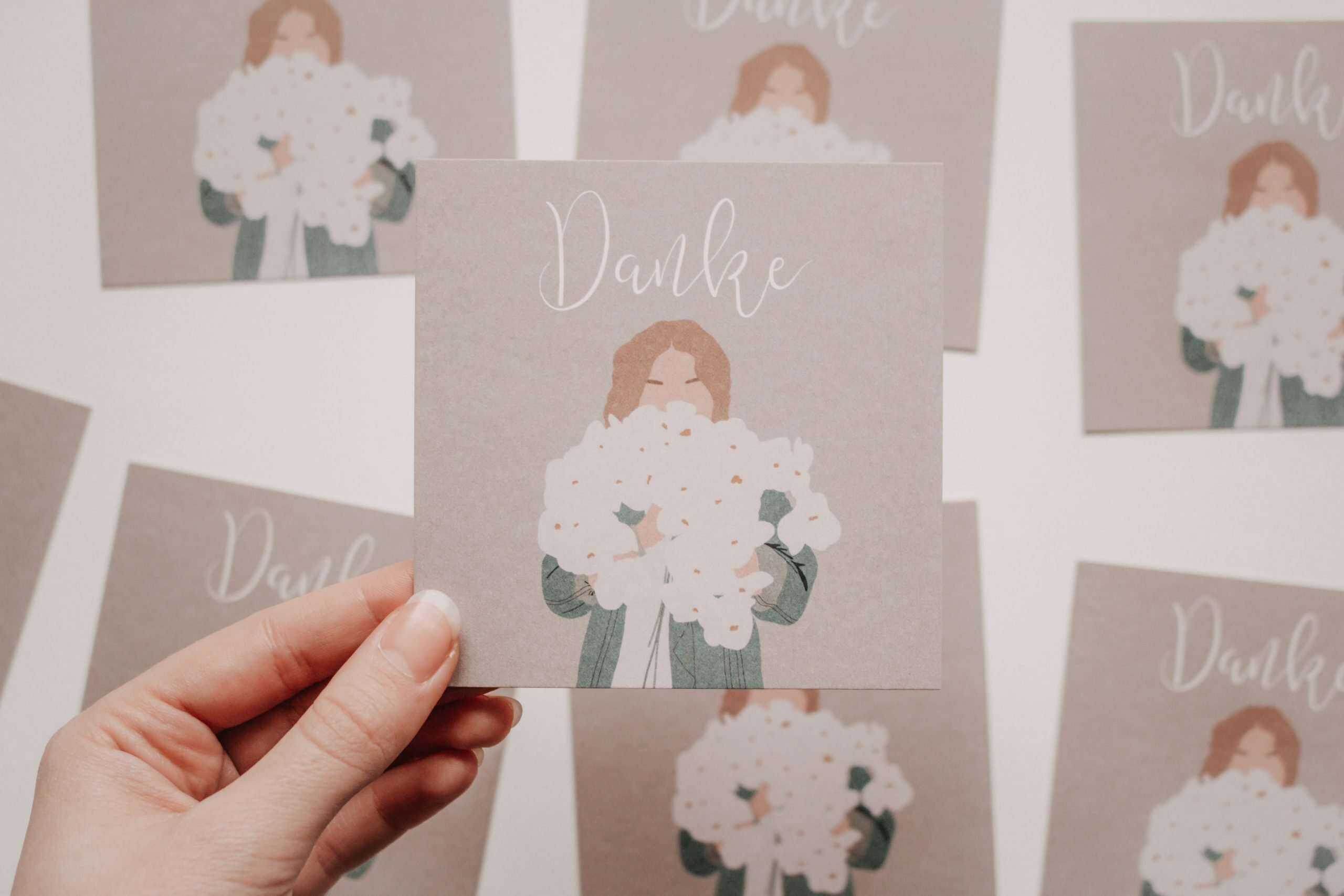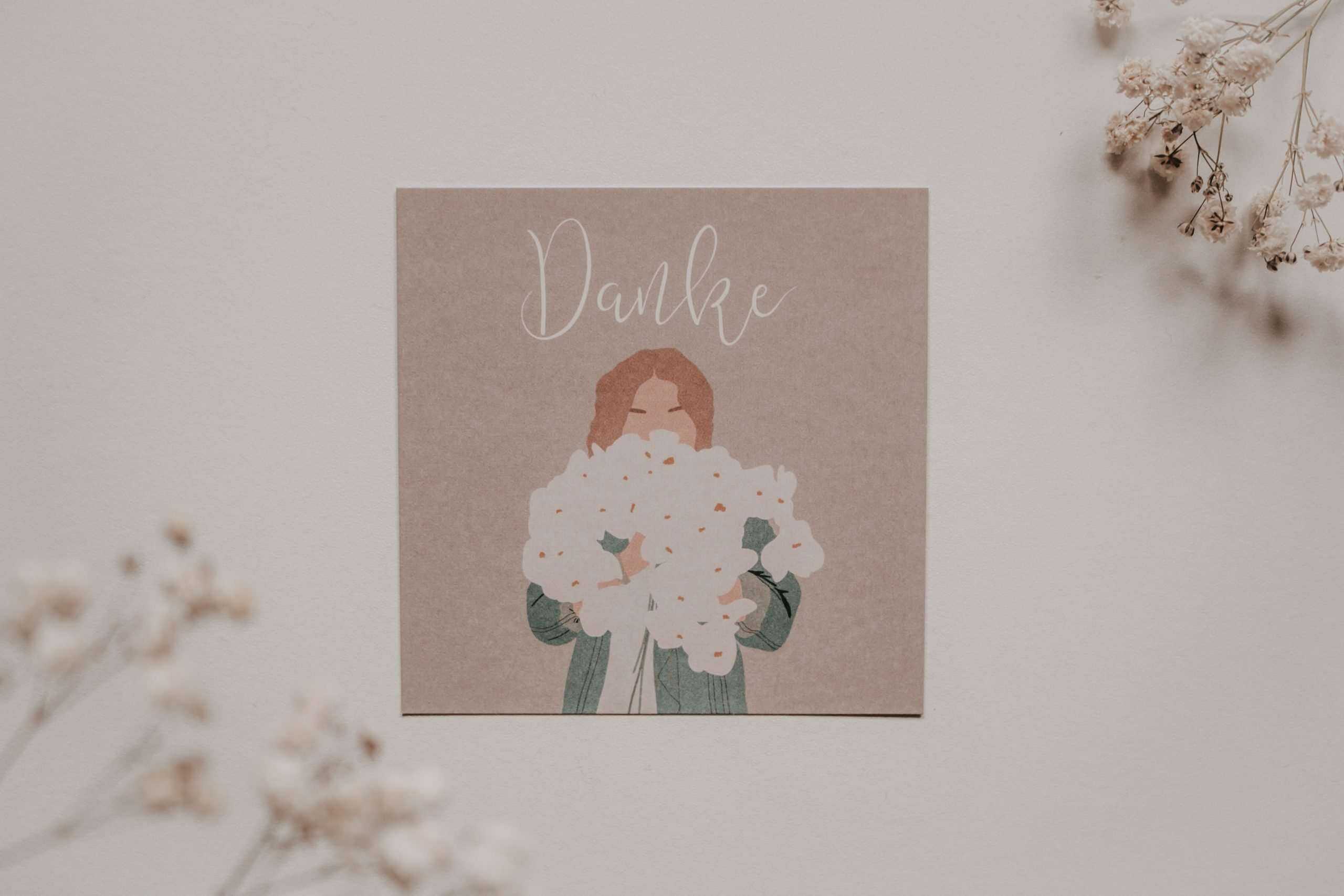 Die Ermutigungskarte ,,danke” im schlichten Design mit moderner Illustration in matter Optik.