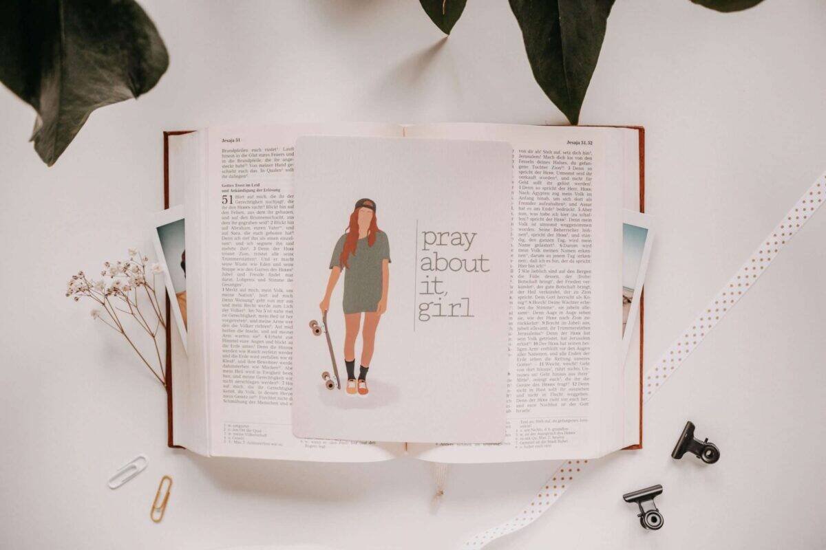 Die Karte ,,Pray about it” im schlichten Design mit moderner Illustration.