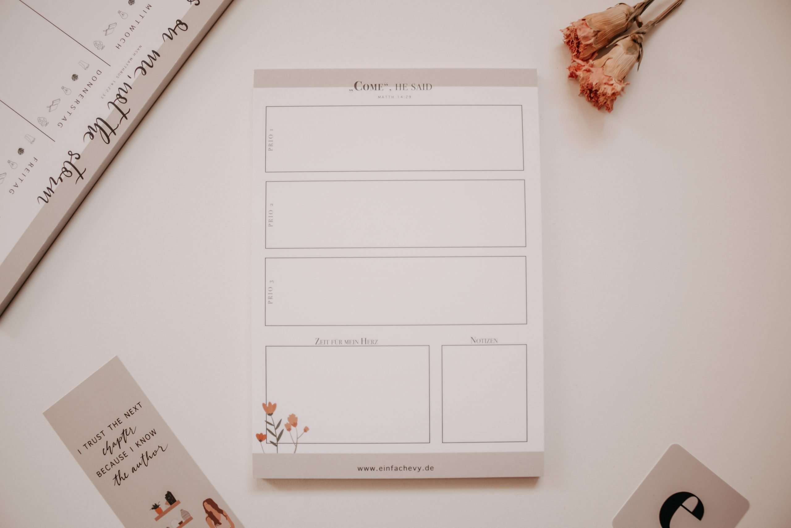 Der Block lässt sich mit dem Wochenplaner ‘Focus on me’ kombinieren, um alle deine Wochenziele im Blick zu haben und dir somit den Alltag zu erleichtern.