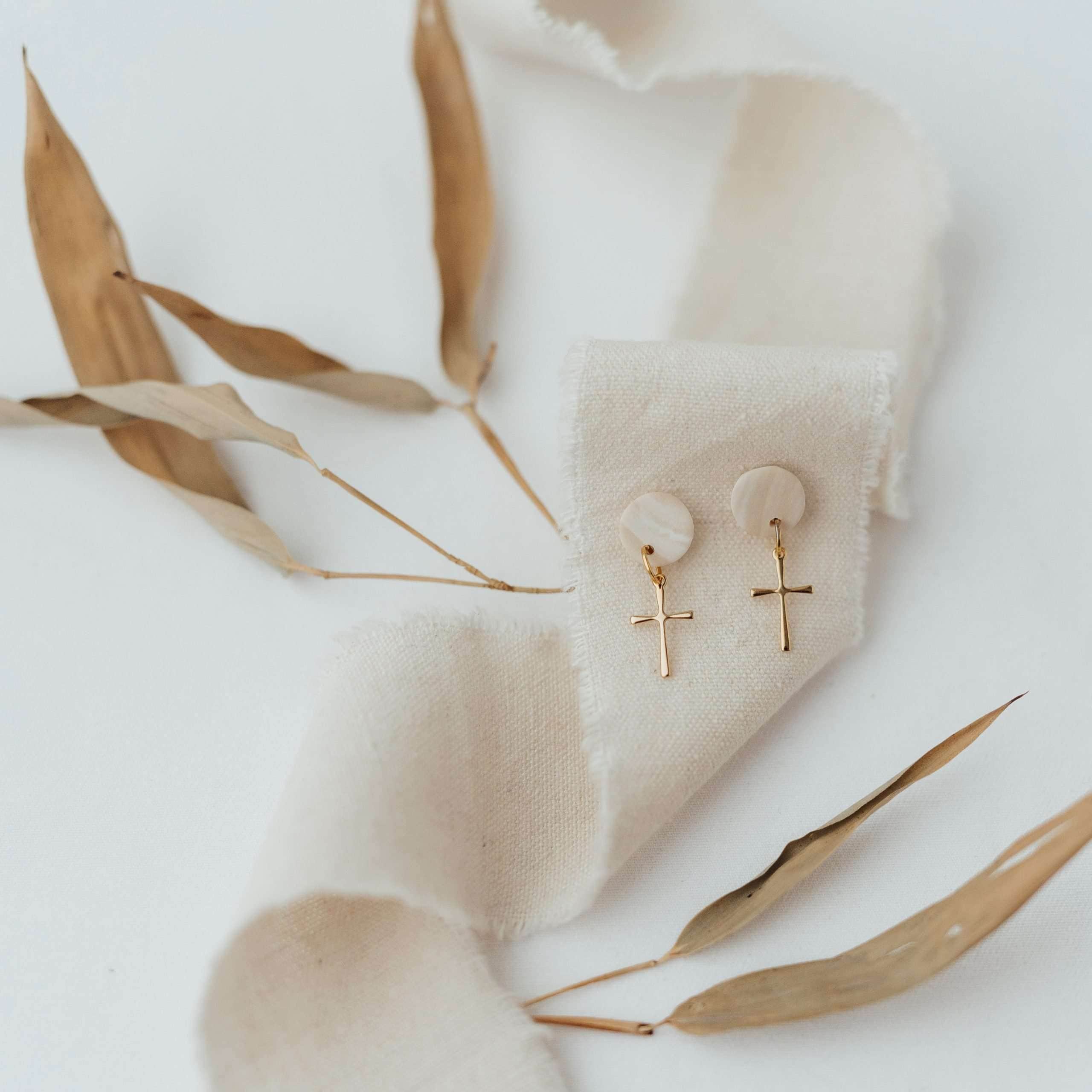 Goldene Kreuz-Ohrringe, christliches Schmuckdesign, Modeaccessoires für Christen.