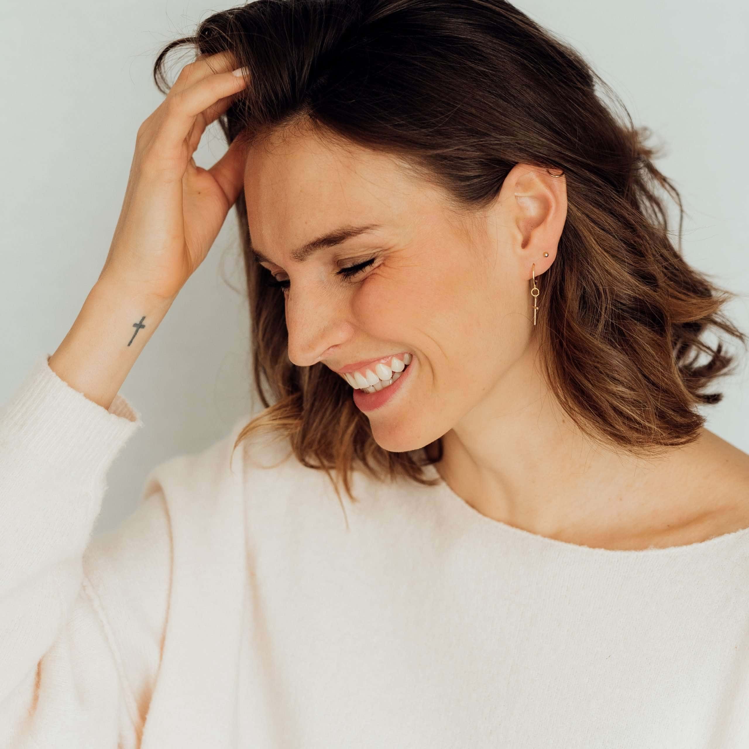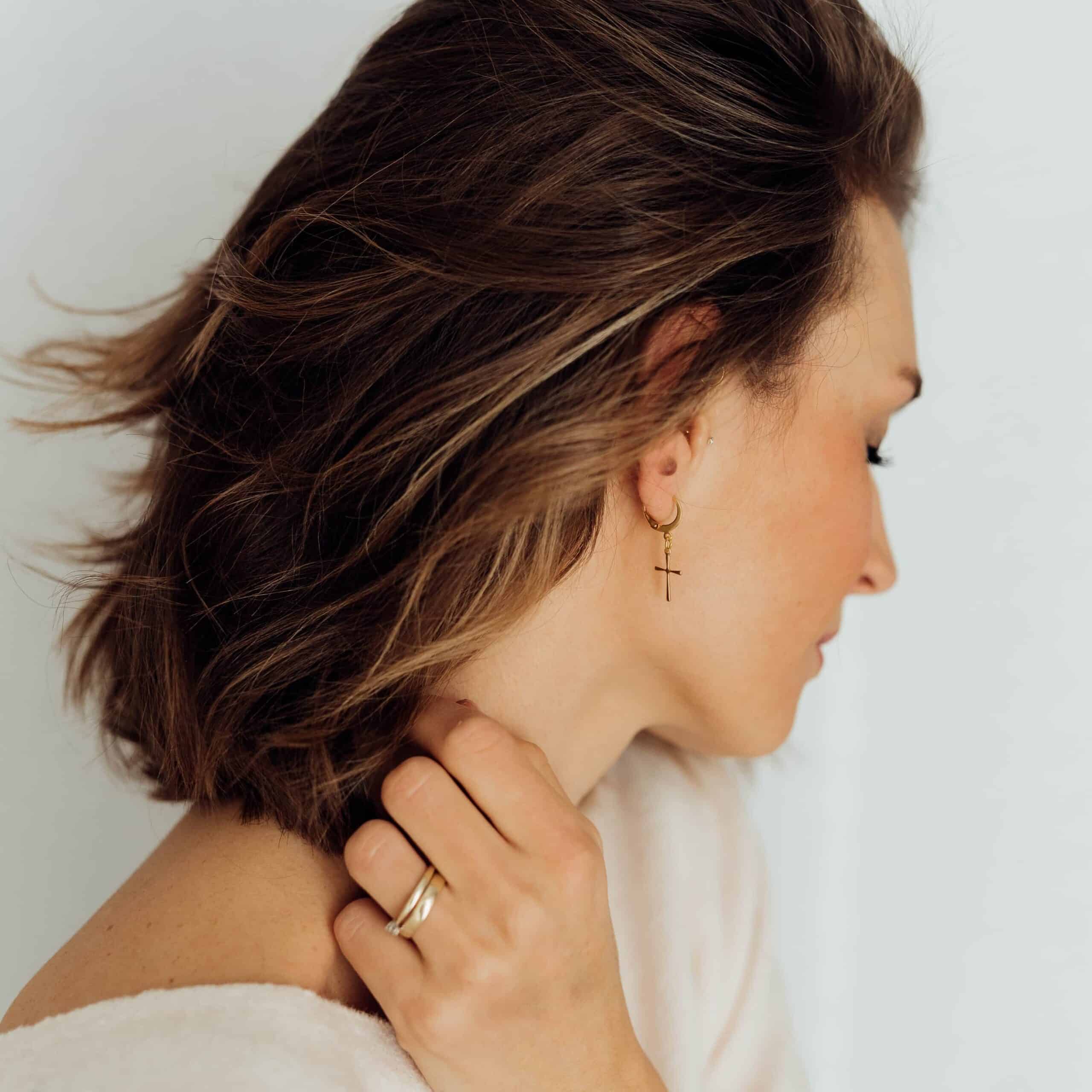 “Alive Gold Hoops” sind filigrane Ohrringe, die zu jeder Gelegenheit getragen werden können. Der Stil ist edel und puristisch gehalten. Das vergoldete Kreuz in Verbindung mit den Hebel-Hoops ist besonders einfach zum An- und Ausziehen.