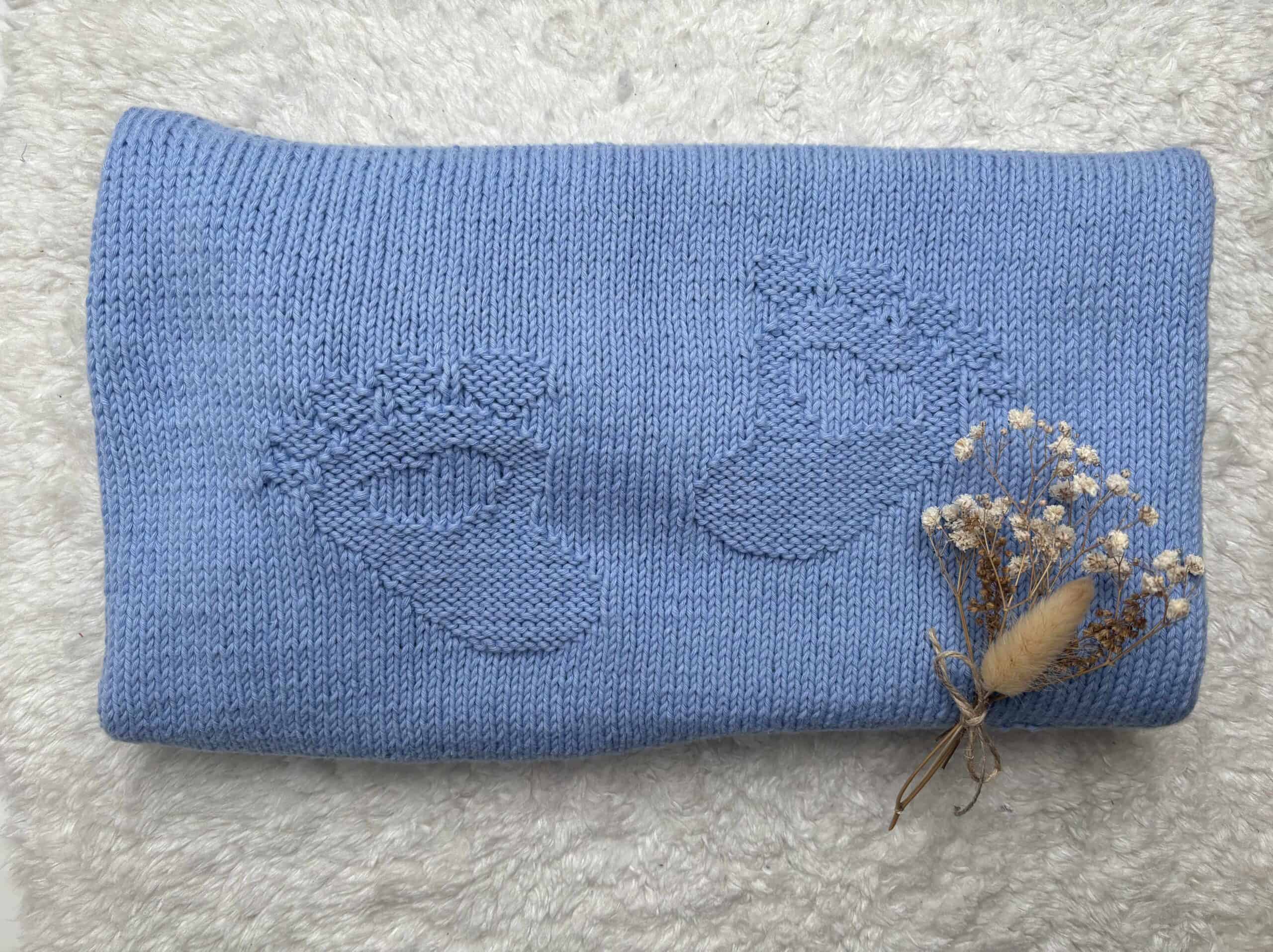Babydecke blau – gestrickt – 100 % Bio-Baumwolle