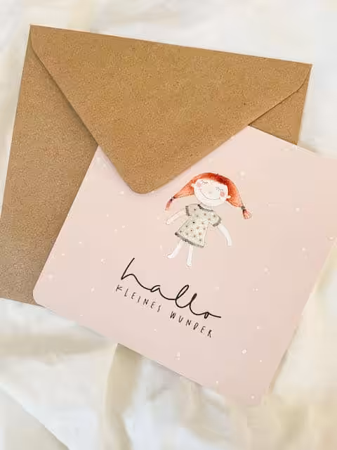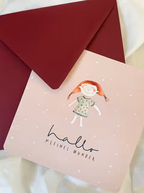 “Hallo kleines Wunder” für Mädels und “schön, dass Du da bist” für Jungs.