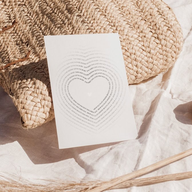 Hochwertiger Druck auf 300g Recyclingkarton weiß.