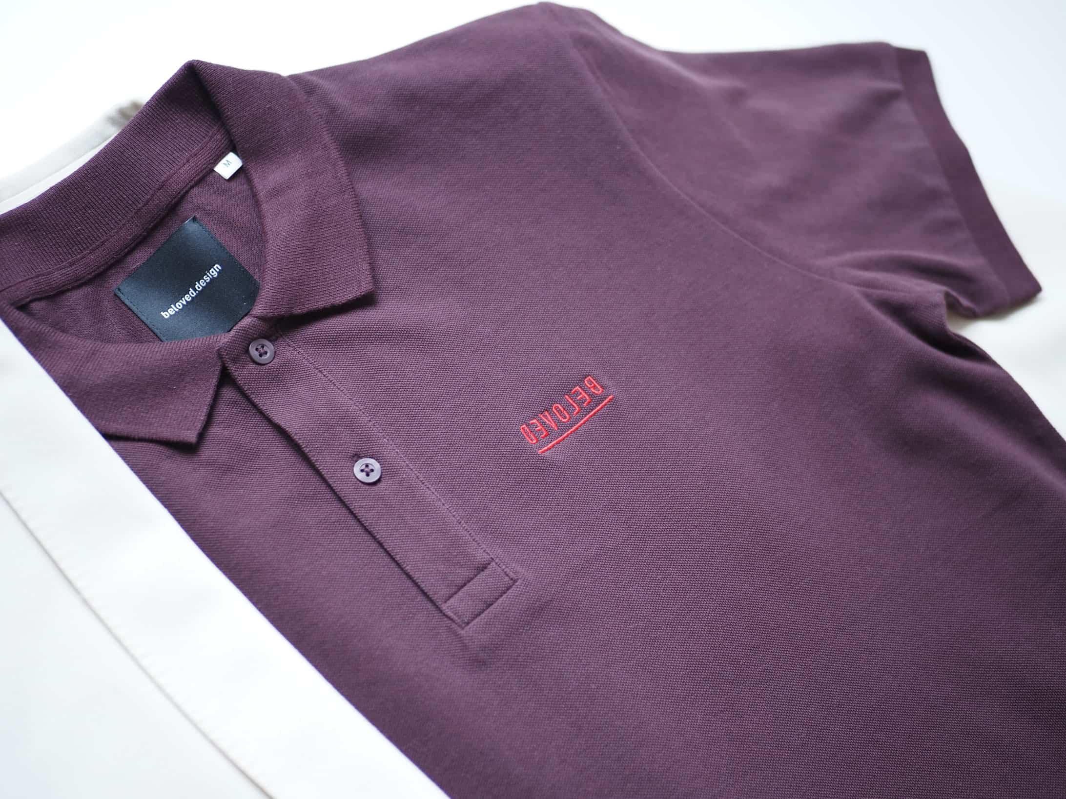 Fein gearbeitetes Poloshirt in der der Farbkombination Burgundy mit rotem Stick.