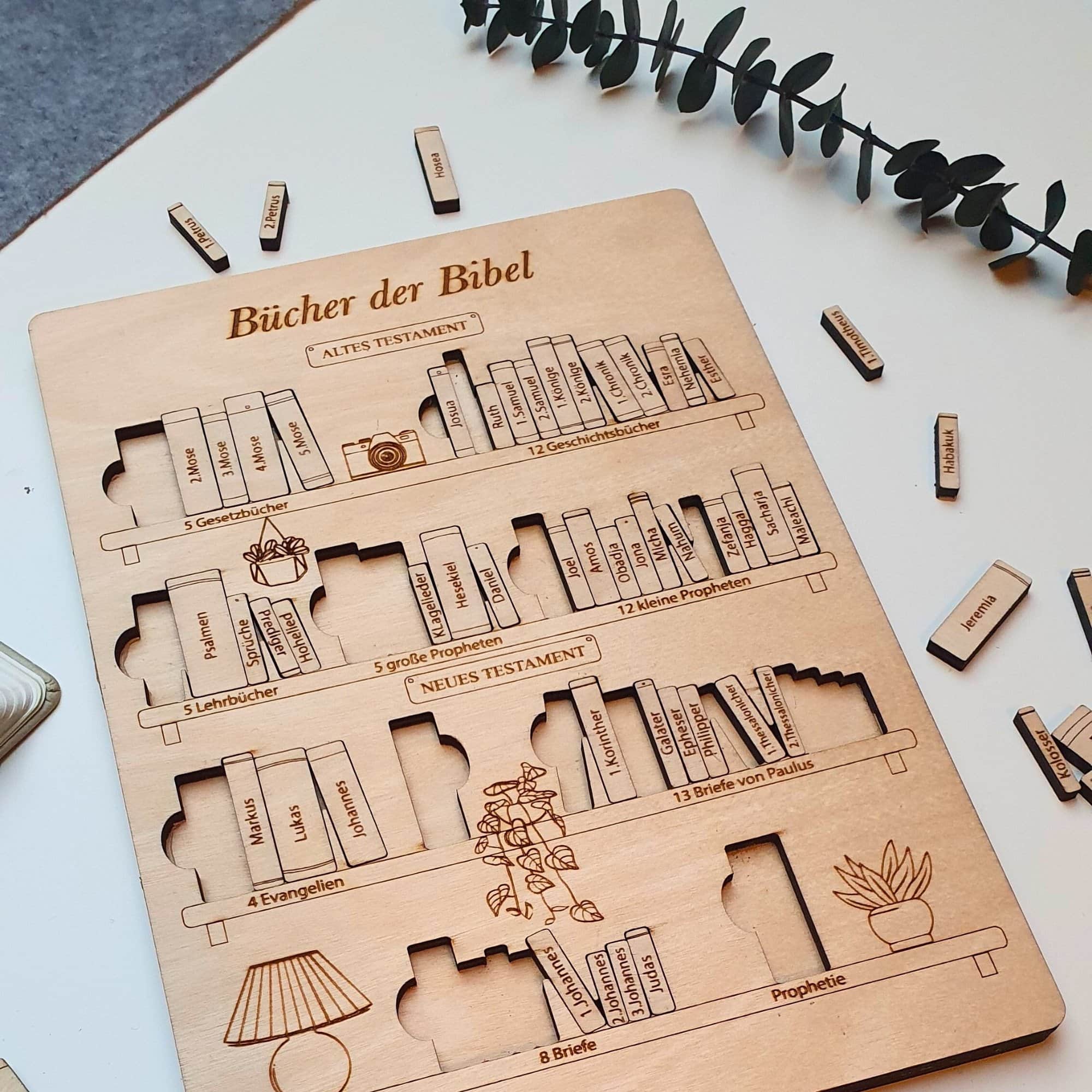 Bücher der Bibel Puzzle aus Birkenholz – Christliche Geschenke & Holzpuzzle.