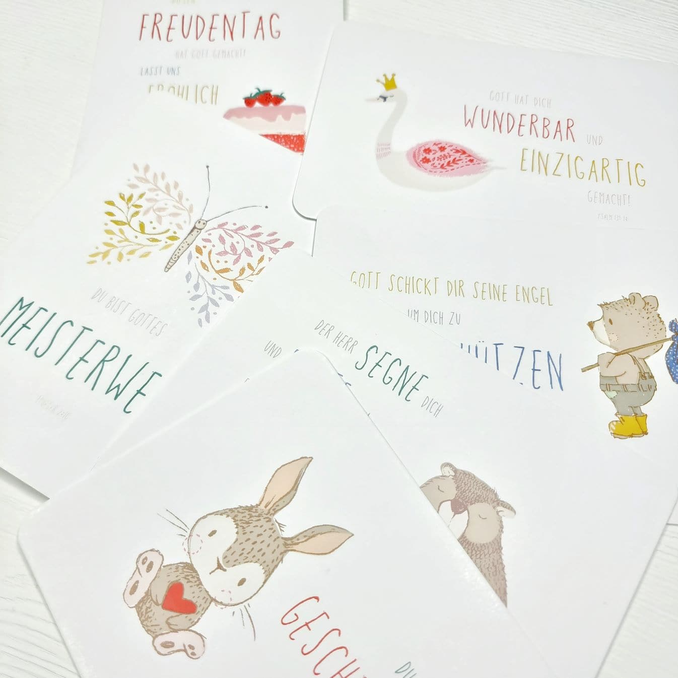 Beinhaltet die Postkarten: Meisterwerk, Geschenk Gottes, Wunderbar und Einzigartig, Freudentag, Beschützt, Aaronitischer Segen