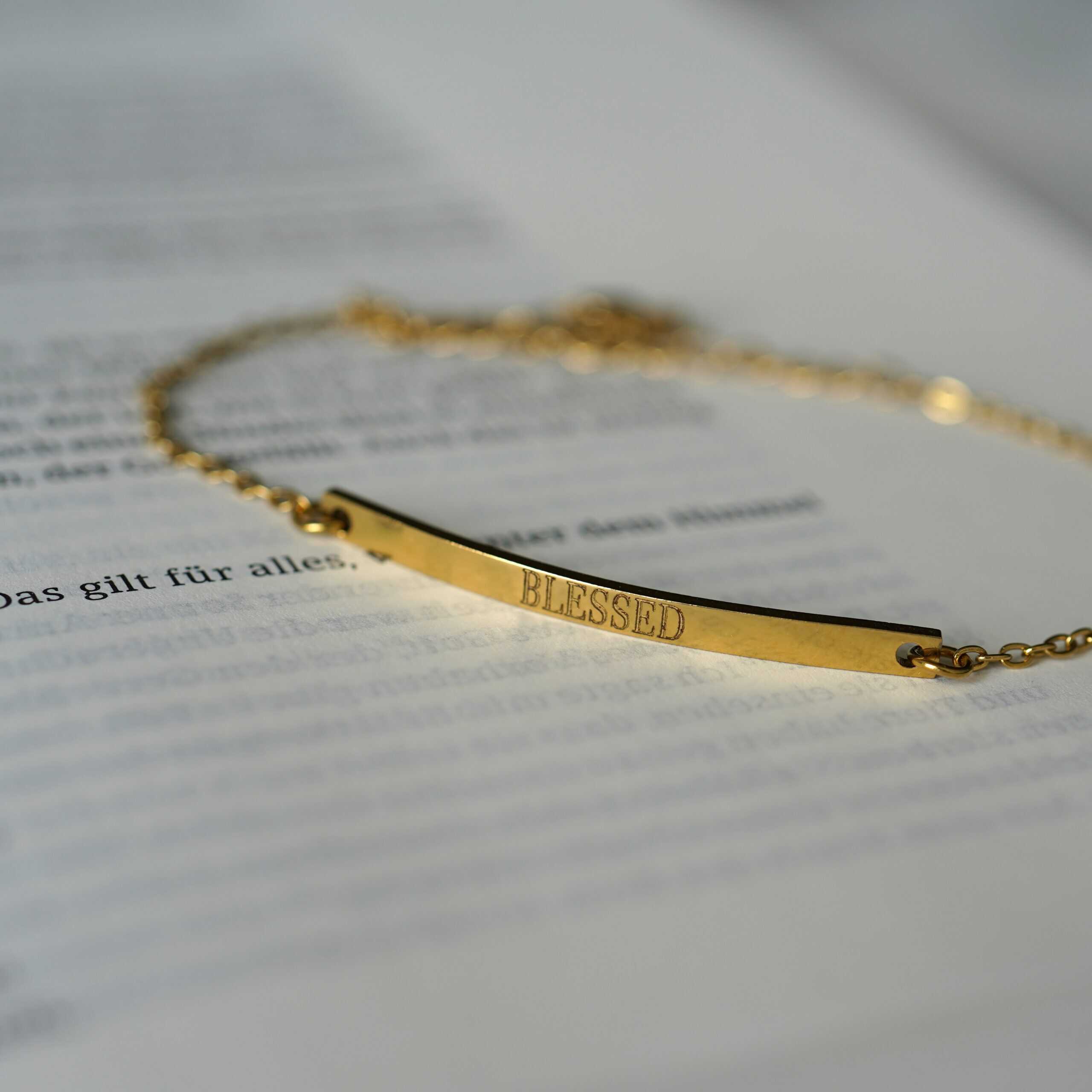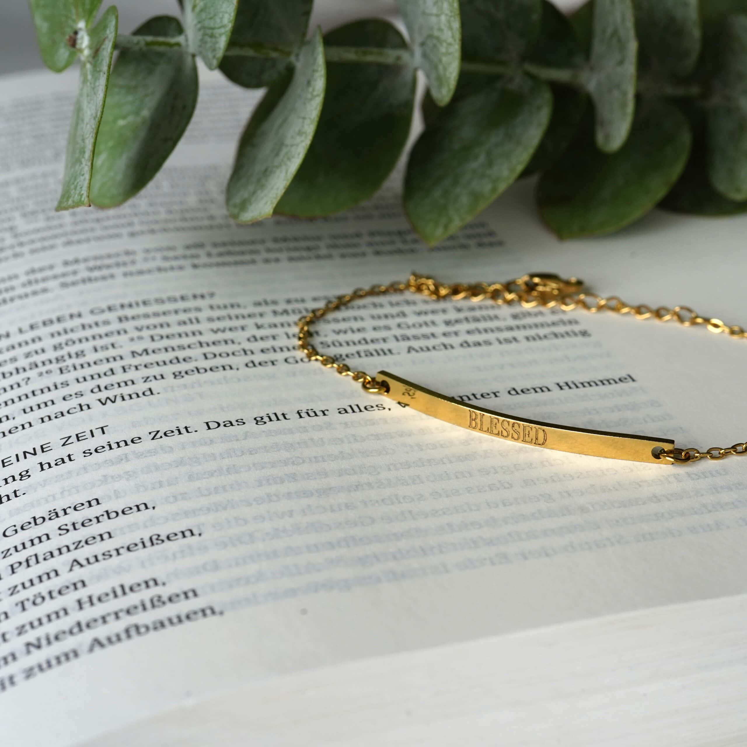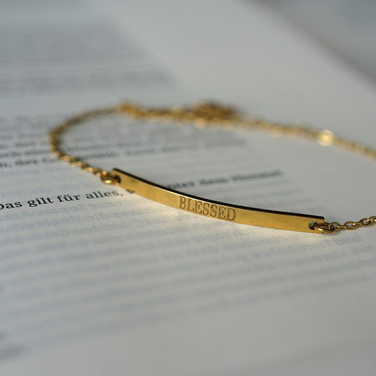 Trage das Armband „BLESSED“ als tägliche Erinnerung an die wahre Quelle des Segens. Inspiriert von Matthäus 5,9 – „Selig sind die Friedfertigen; denn sie werden Gottes Kinder heißen“ – erinnert dich dieses elegante Armband täglich an den Frieden und die göttliche Liebe, die in deinem Leben wirken. Trotz aller Herausforderungen sind wir dank Jesus doch trotz allem sooo blessed!