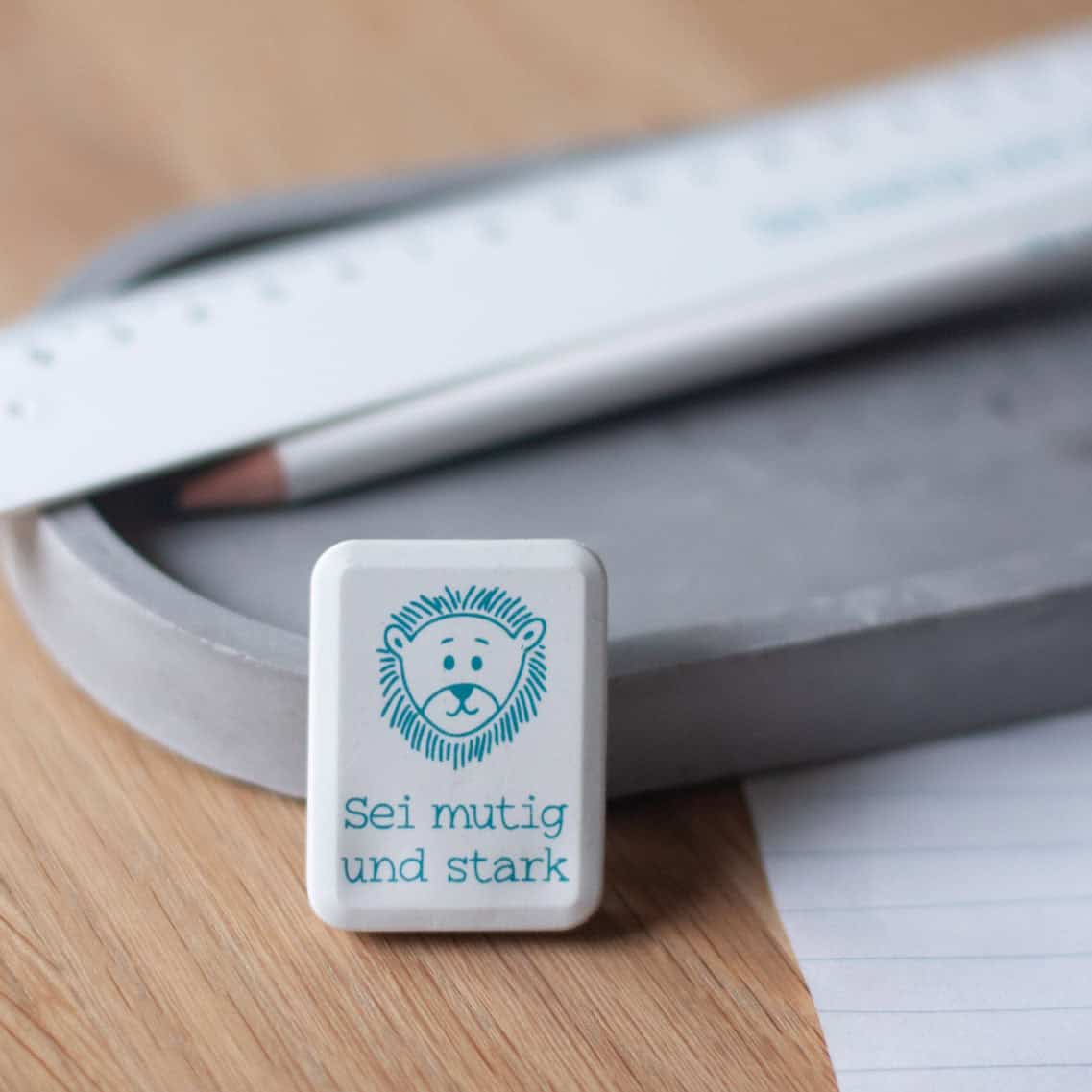 PVC-frei und in Deutschland hergestellt. Das fröhliche Löwengesicht macht ihn nicht nur praktisch, sondern auch zu einem fröhlichen Blickfang im Federmäppchen.
