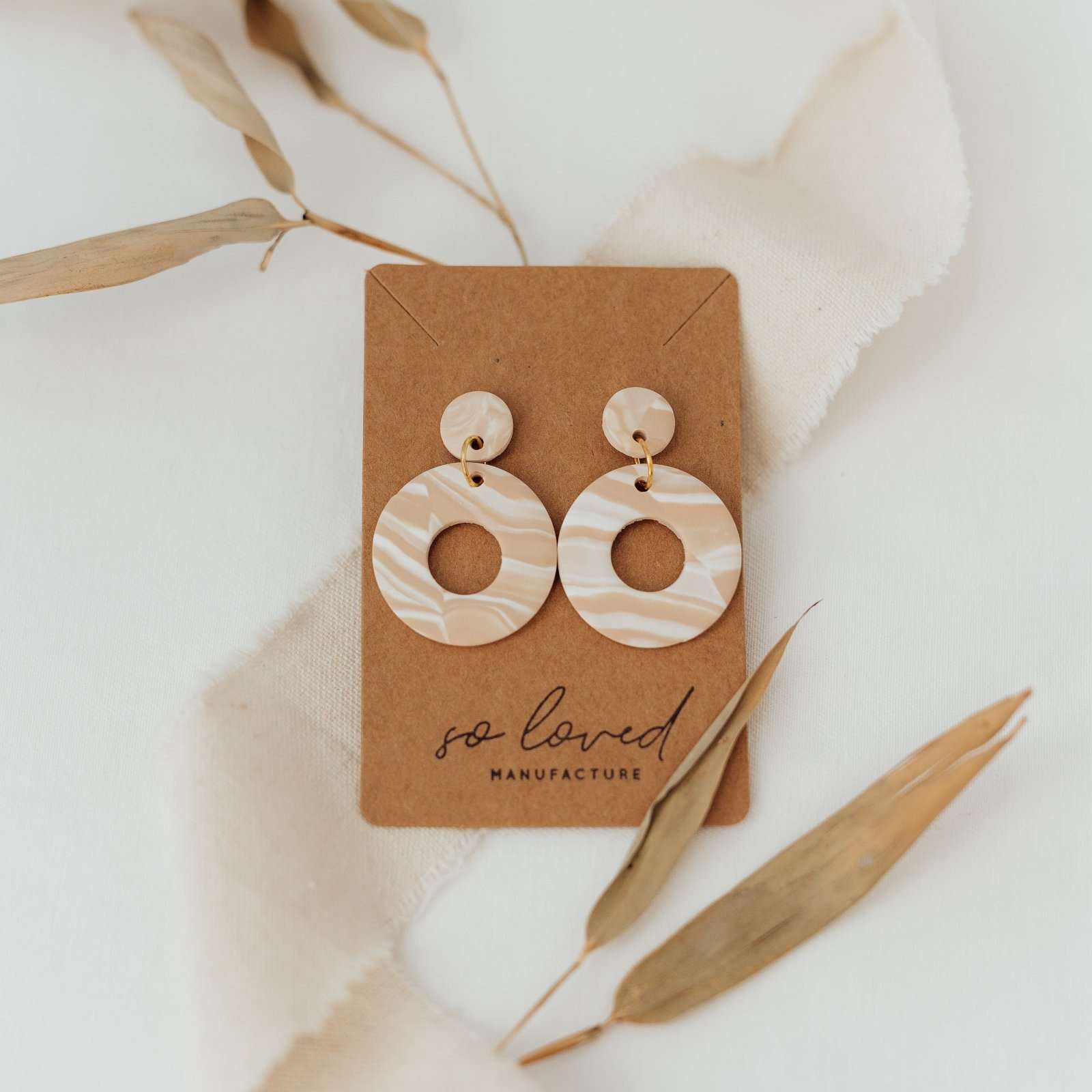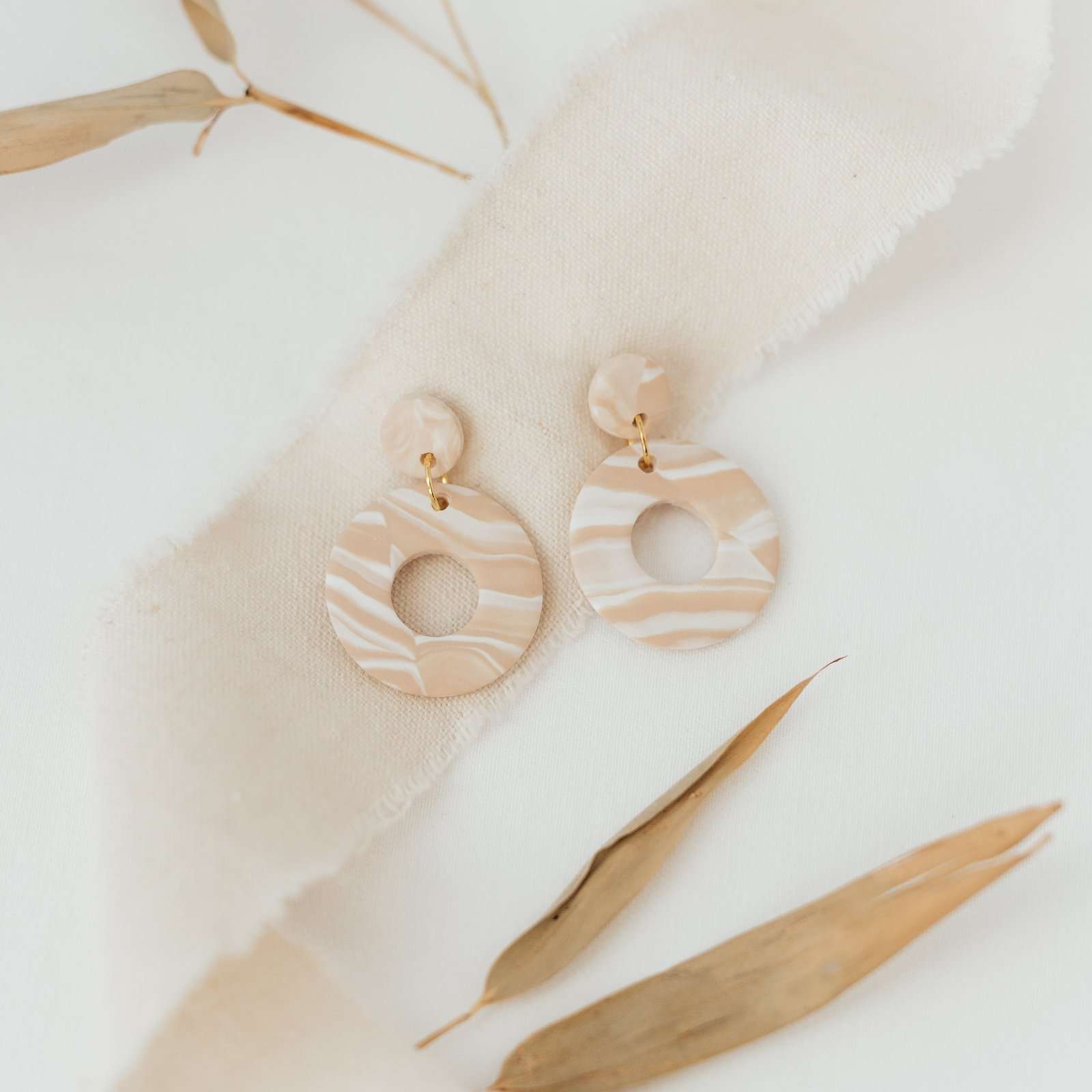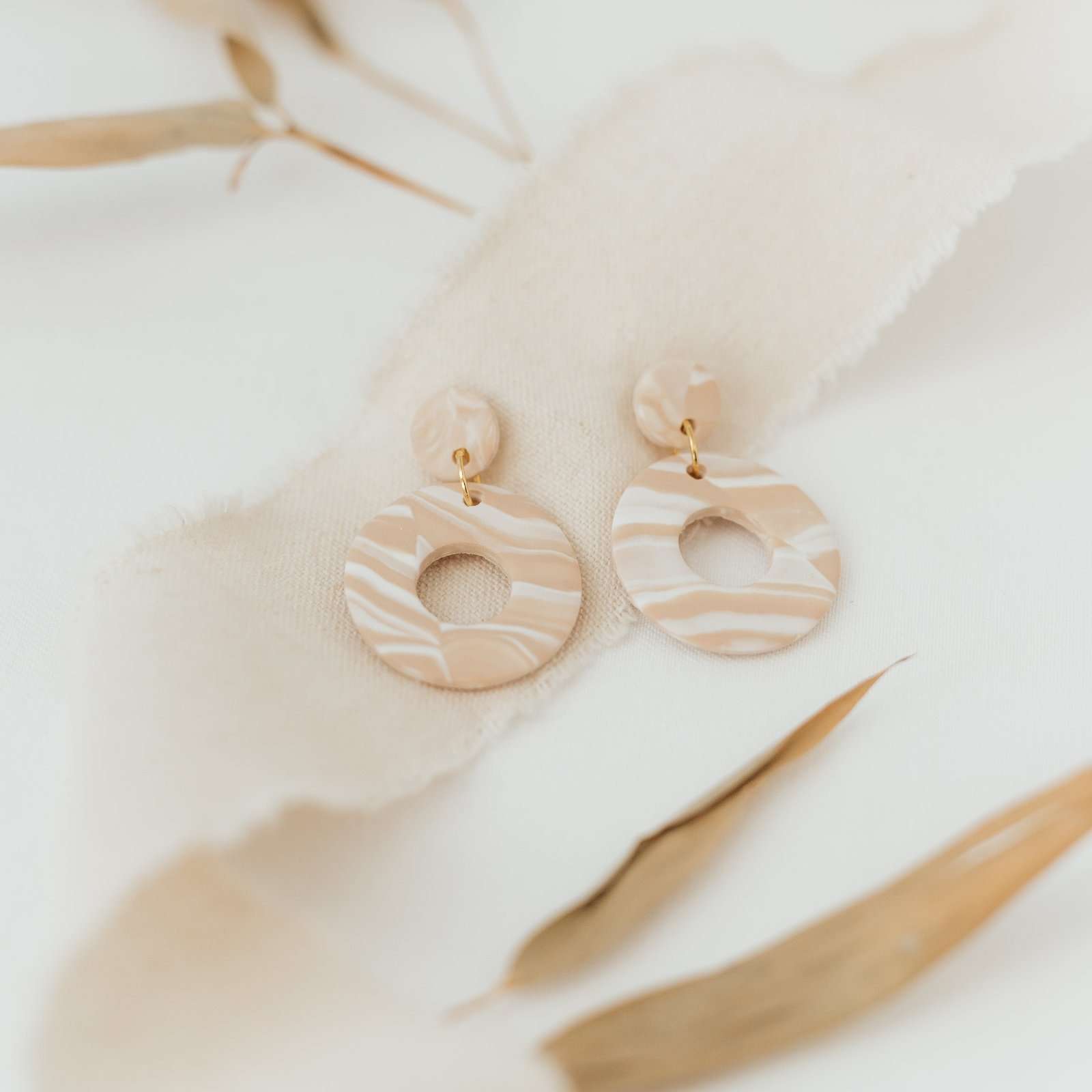 Circle Small (with cutout)” transportiert Leichtigkeit und ist dennoch ein unschlagbarer Hingucker. Die Kombination aus Stabilität, Festigkeit, geringem Gewicht und großer Farbvielfalt macht das Polymer zu dem perfekten Material für Ohrringe. Die schlichte und zugleich edle Marmorierung gibt es in den Farben beige/weiß und grau/weiß.