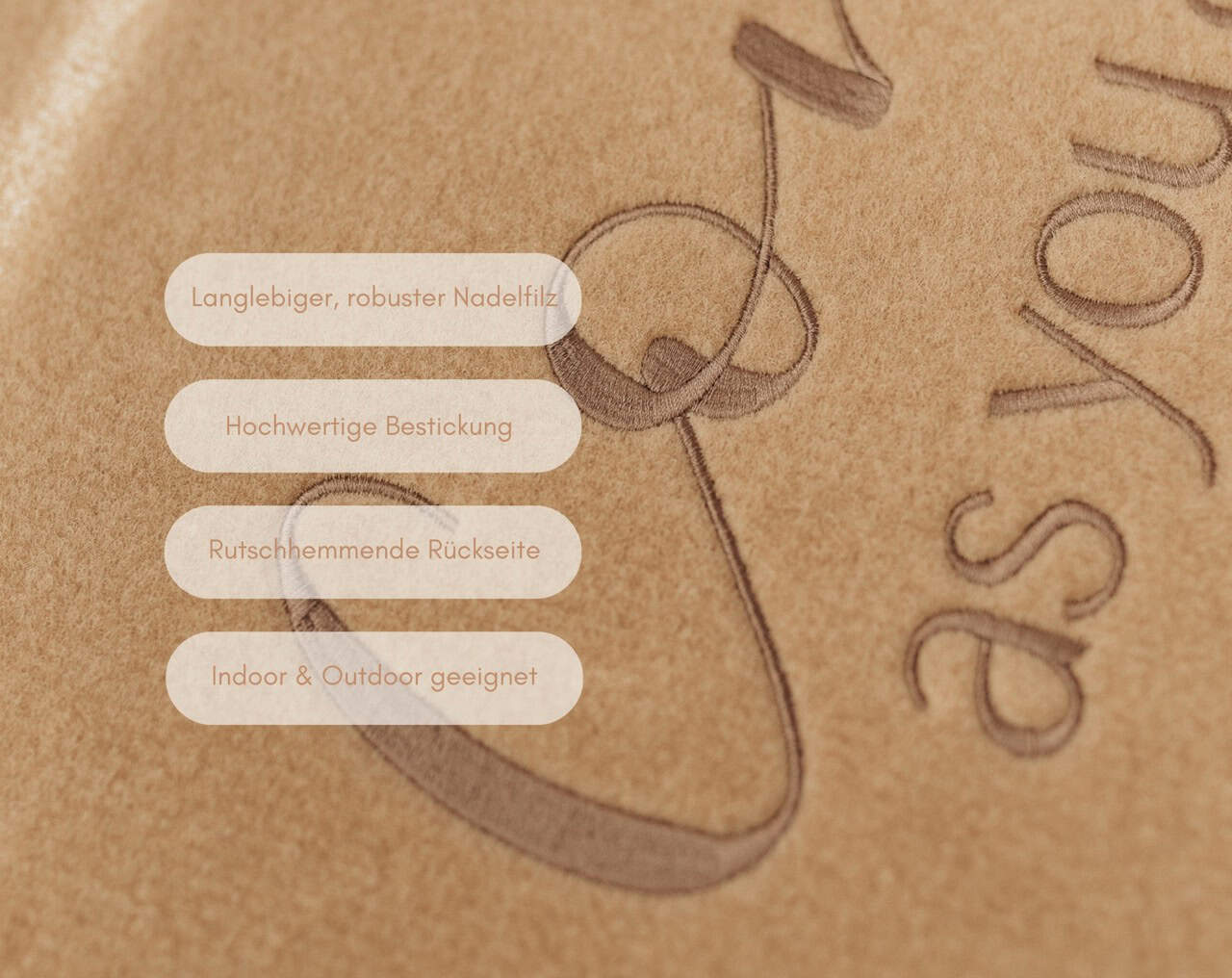Nicht für den Einsatz im Freien bei extremen Witterungsbedingungen geeignet. Vermeiden Sie den dauerhaften Kontakt mit Feuchtigkeit, da dies die Form der Matte beeinträchtigen könnte.