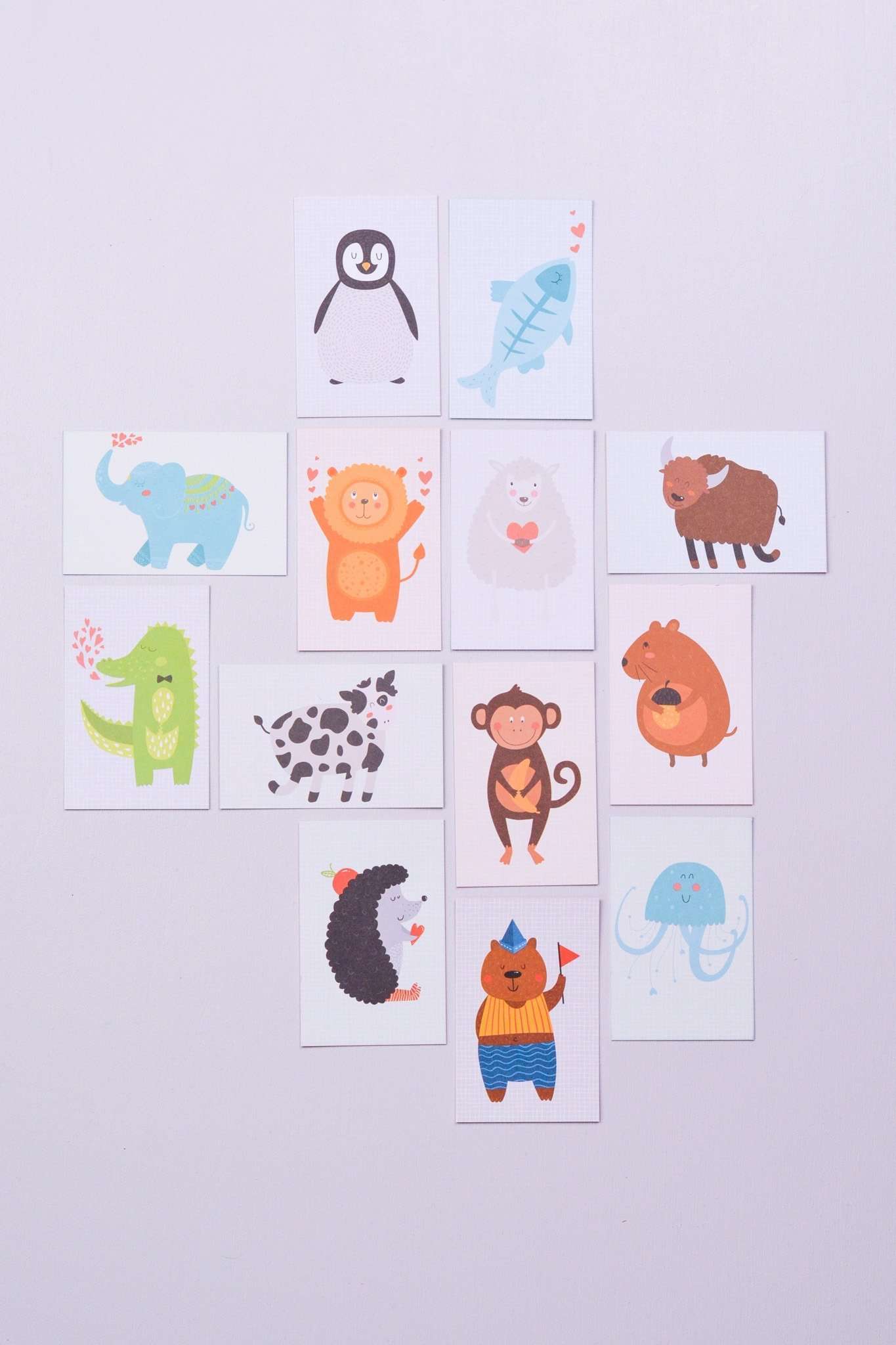 Die Schachtel ist gefüllt mit 65 Mutmachkarten der Serie “Du bist”, 13 einzigartigen Motiven, also 5 Karten je Motiv.
