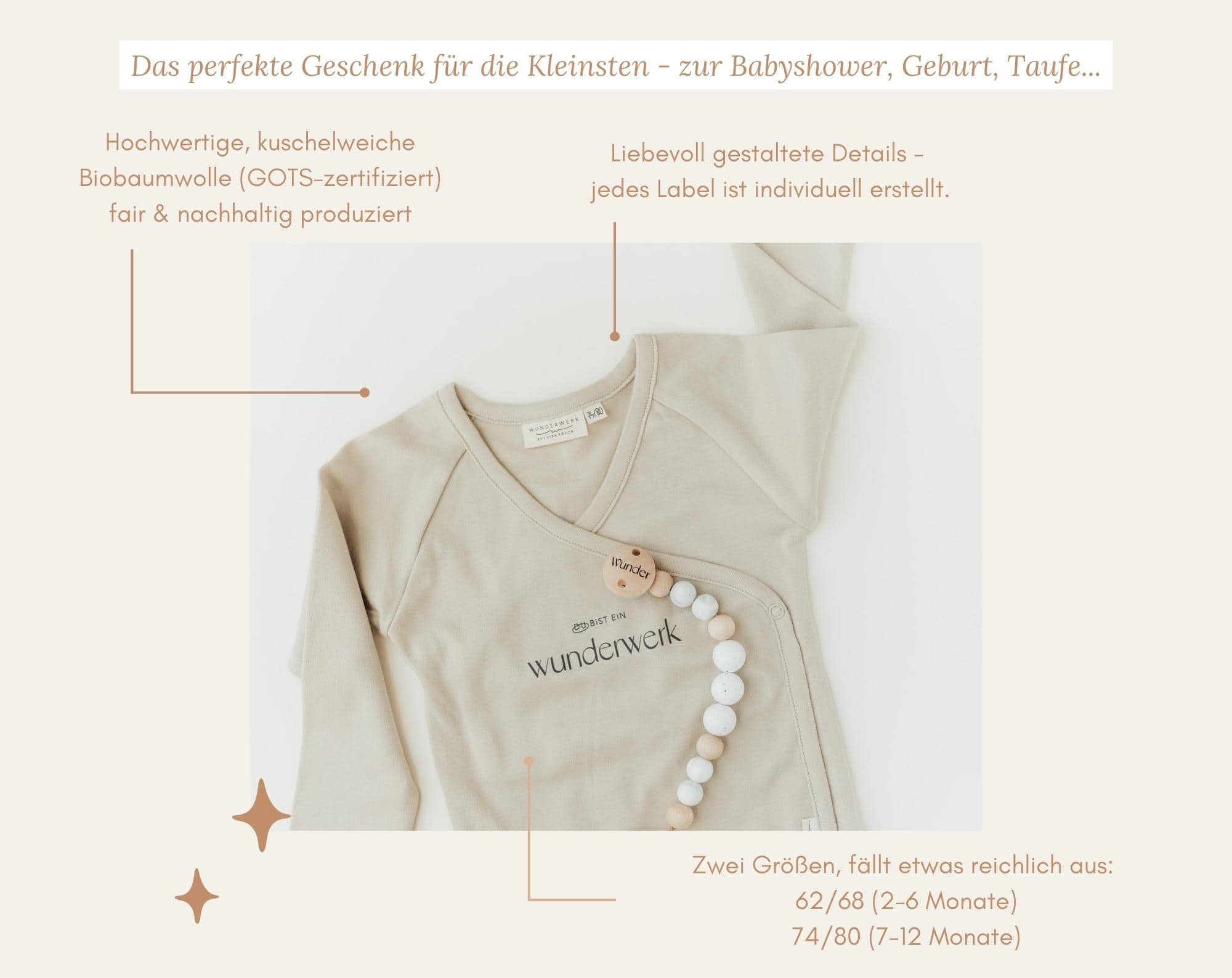 Dieser fair & nachhaltig produzierte langarm Babybody aus 100 % Baumwolle aus biologischem Anbau (GOTS zertifiziert) ist ein einzigartiges Geschenk zur Babyshower, Geburt, Taufe, zum 1. Geburtstag.