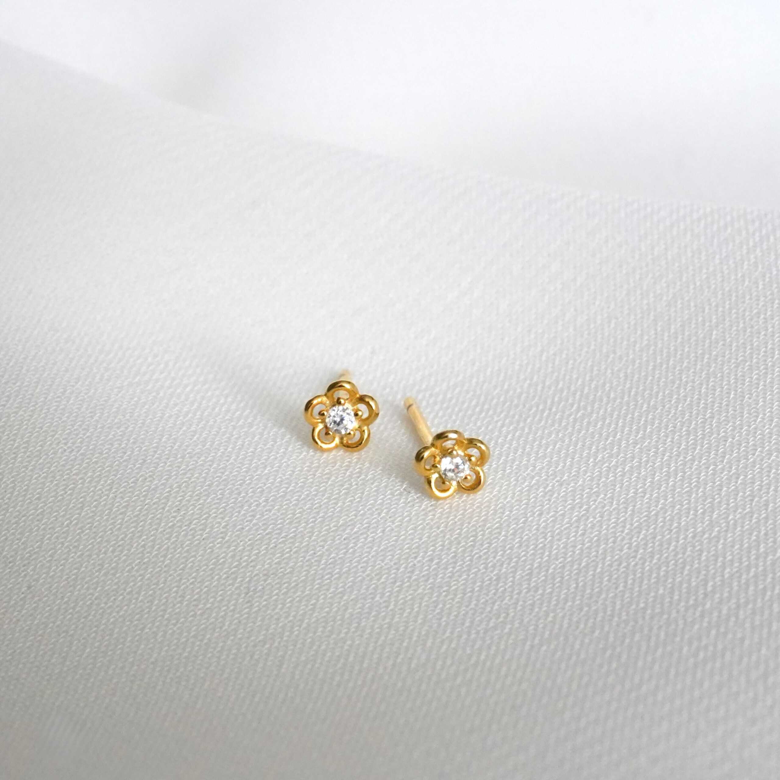 Diese wunderschönen Ohrstecker aus 925 Sterling Silber (vergoldet) sind ein absolutes Must-Have. Die kleinen Blümchen mit Glitzerstein in der Mitte verleihen jedem Look das gewisse Etwas. Sie eignen sich auch ideal als Ergänzung für ein drittes oder viertes Ohrloch.
