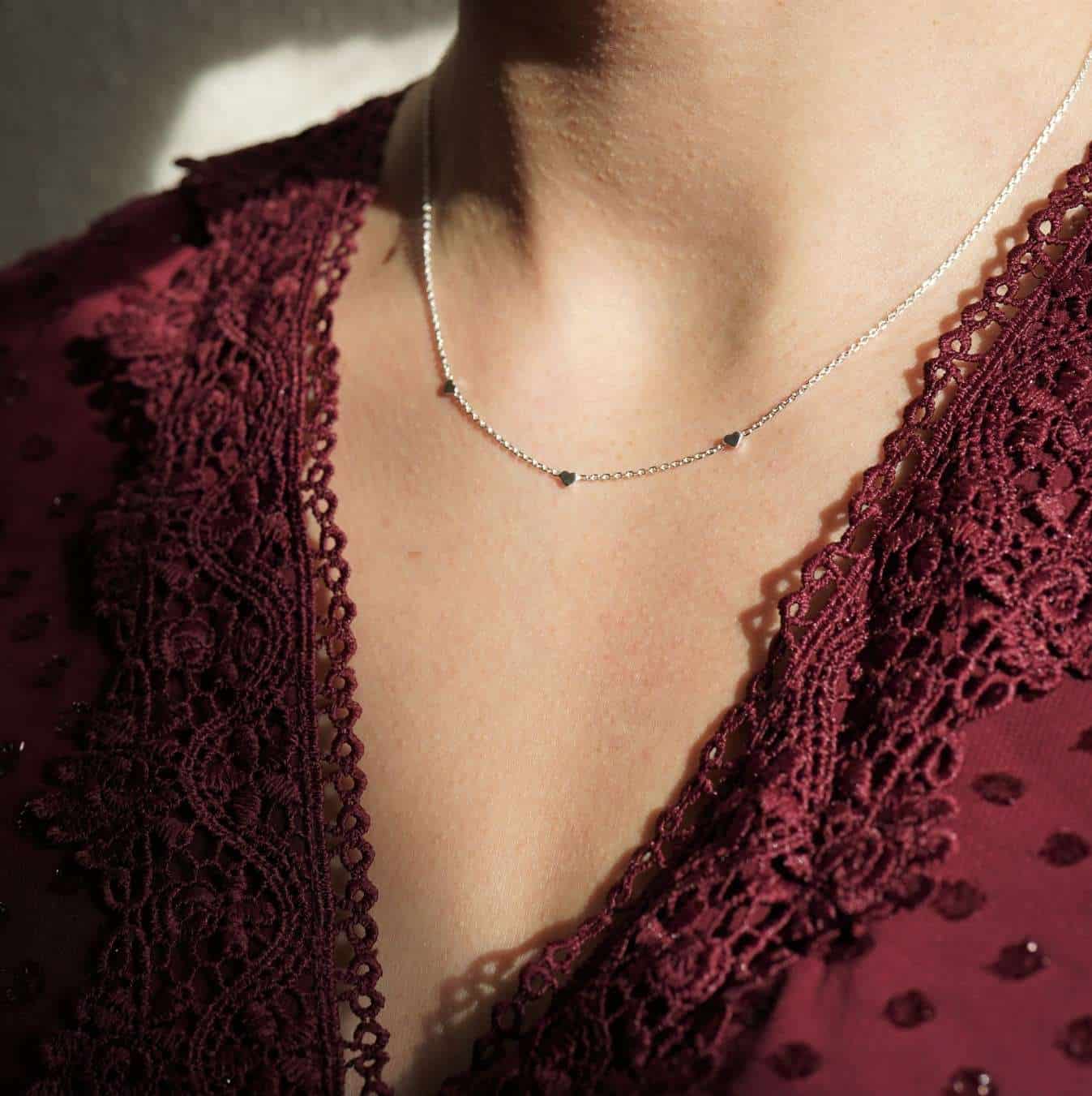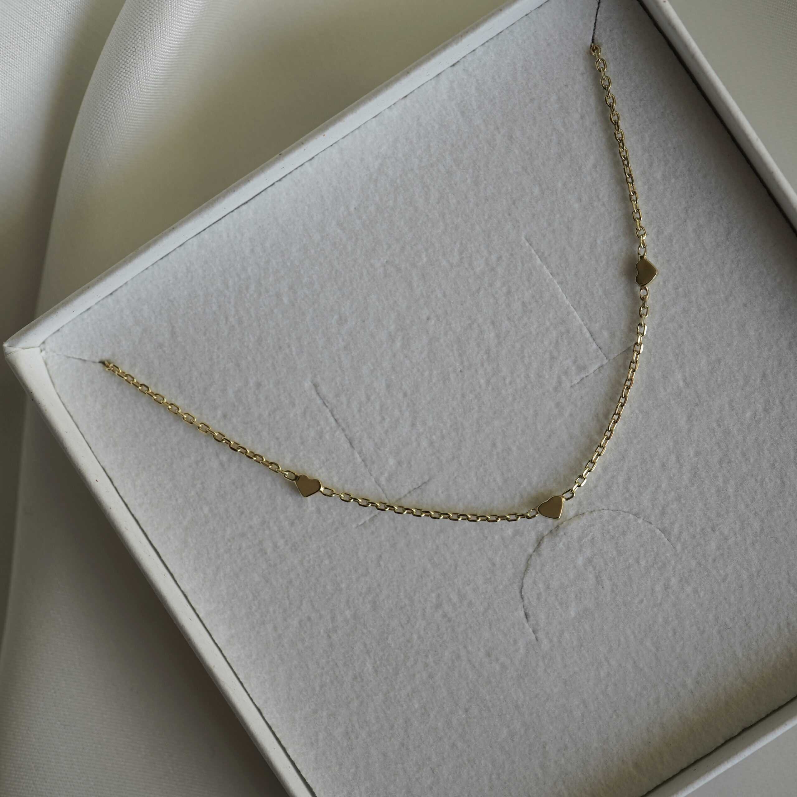 Diese minimalistische Kette mit kleinen Herzchen besteht aus hochwertigem echtem Silber und wurde in Deutschland gefertigt. Der schlichte und doch elegante Stil macht sie zu einem perfekten täglichen Accessoire, das jedes Outfit aufwertet. Die zarten Herzchen dürfen dich immer wieder daran erinnern, wie sehr Gott dich liebt und dass du diese Liebe anderen Menschen weitergeben darfst.