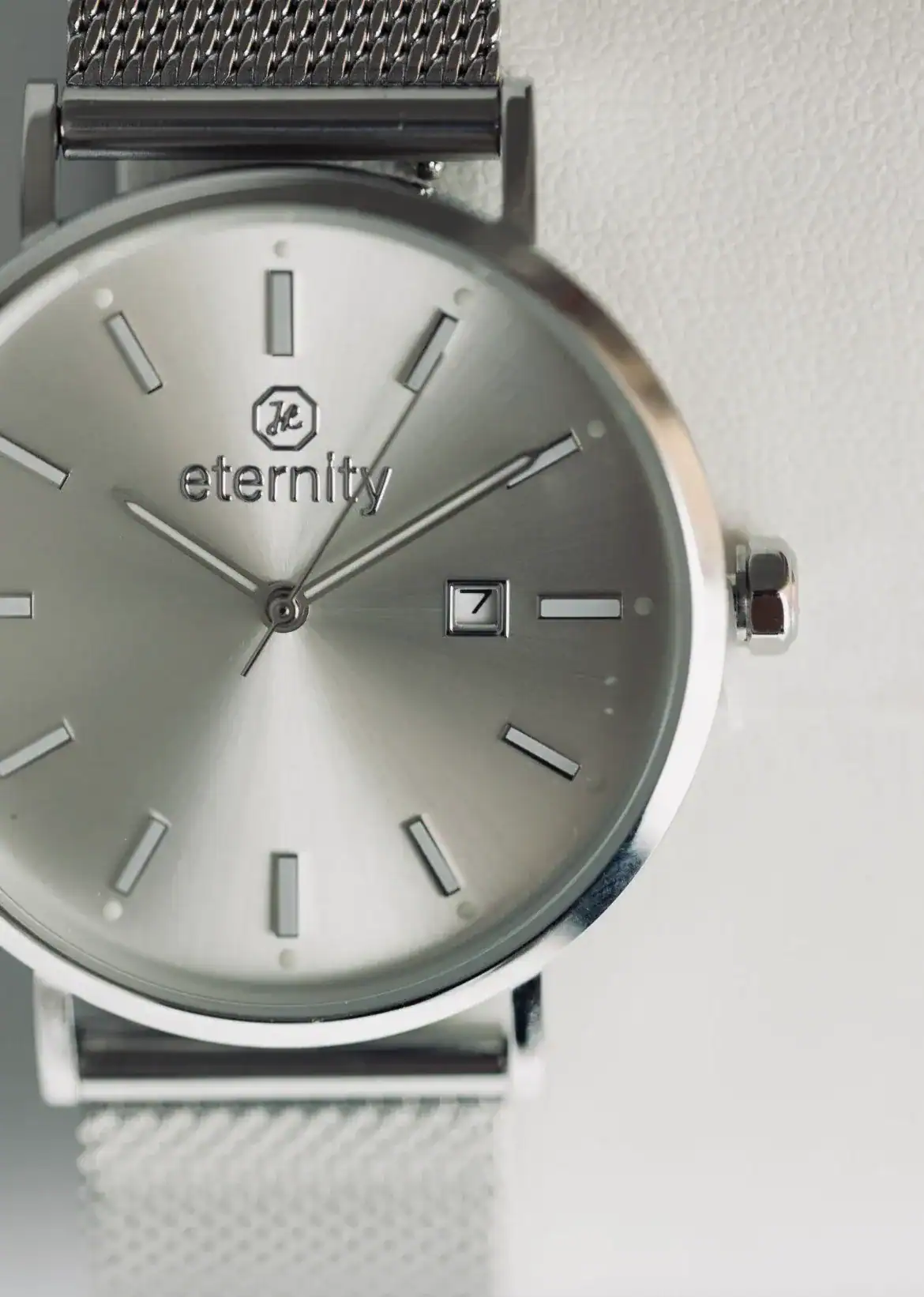 Unser Eternity mesh Strap in silber für Damen ist der elegante Begleiter für deine silberne christliche Uhr. Das feingliedrige Milanaise-Armband veredelt jeden Look und bietet dank integrierter Lasche eine passgenaue Einstellung. Der Easy Release Mechanismus ermöglicht ein schnelles und einfaches Wechseln des Armbands. Ob für edle Anlässe oder den Alltag, dieses Armband verbindet Stil und Komfort perfekt.