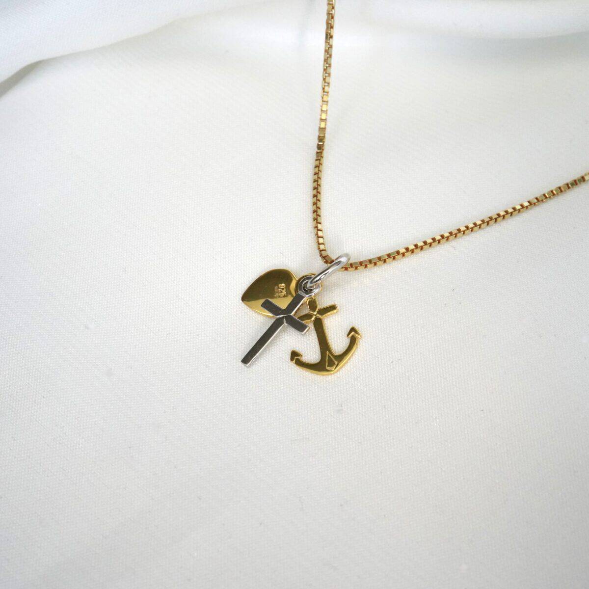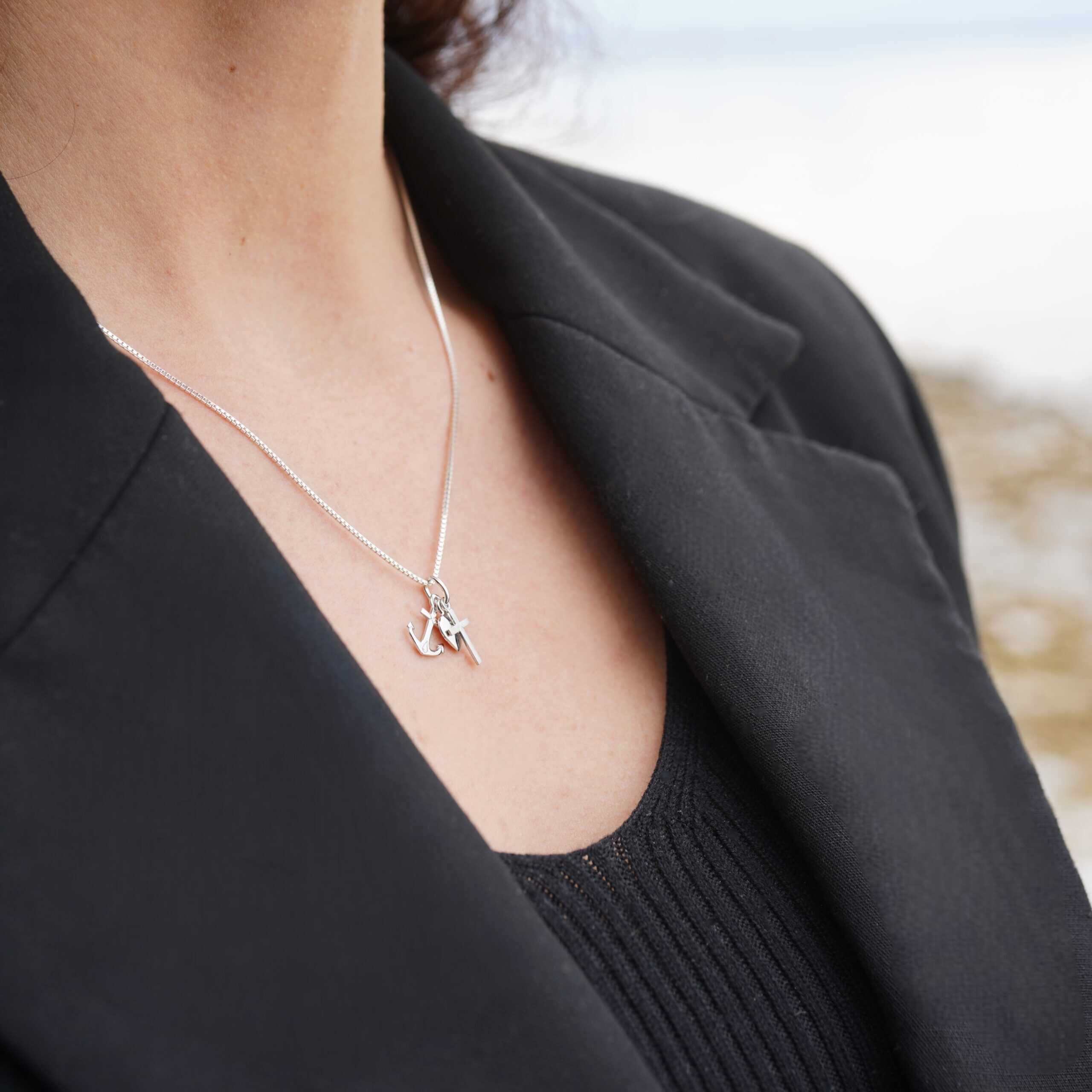 Diese feine Kette aus 925 Sterling Silber (gefertigt in deutscher Silberschmiede) vereint gleich drei bedeutende Symbole: