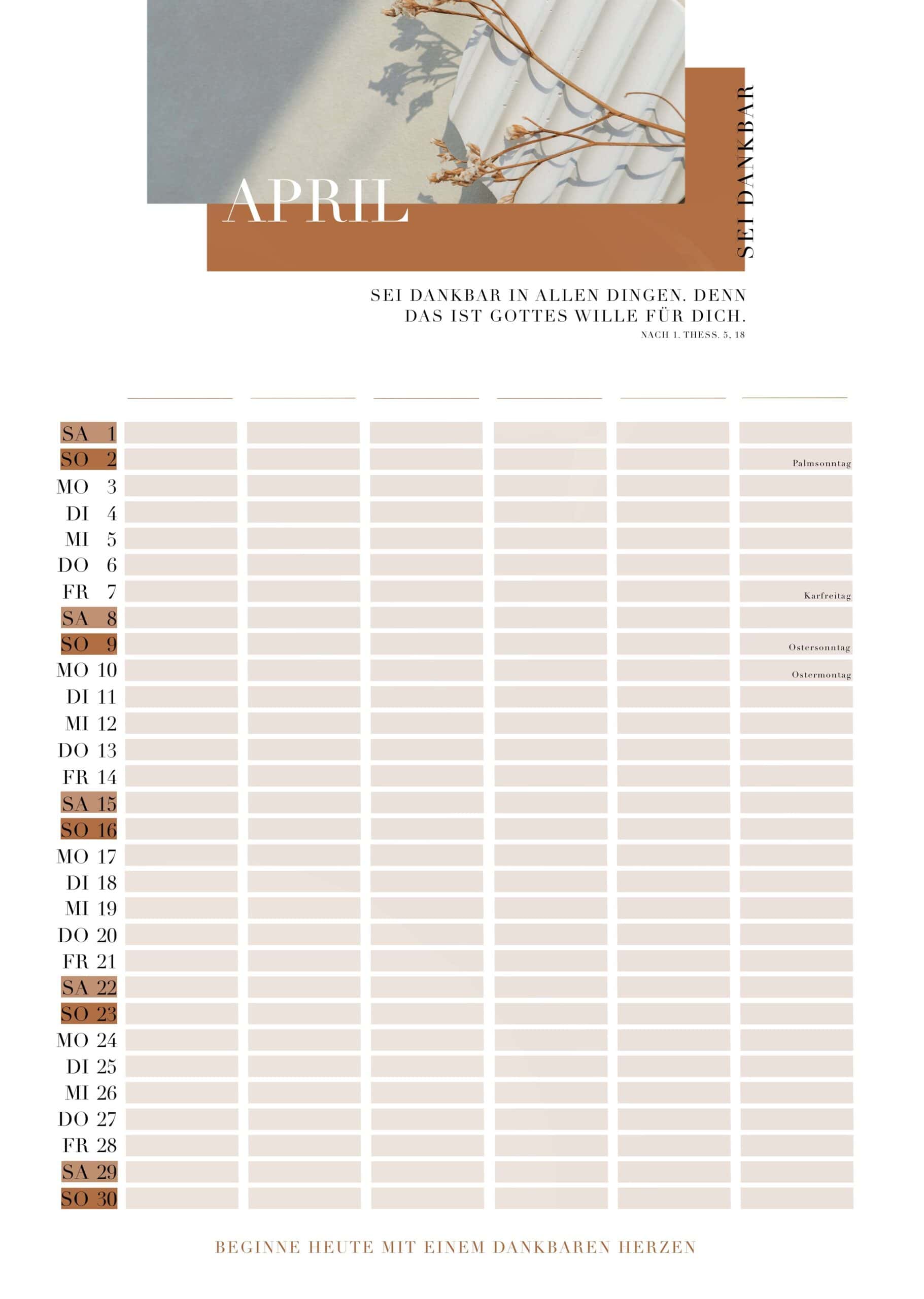 Er verfügt über 6 Spalten für deine Familie. Falls du weniger als 6 Familienmitglieder hast, kannst du die restlichen Spalten für Geburtstage, Events, Mülltage oder andere Projekte verwenden.