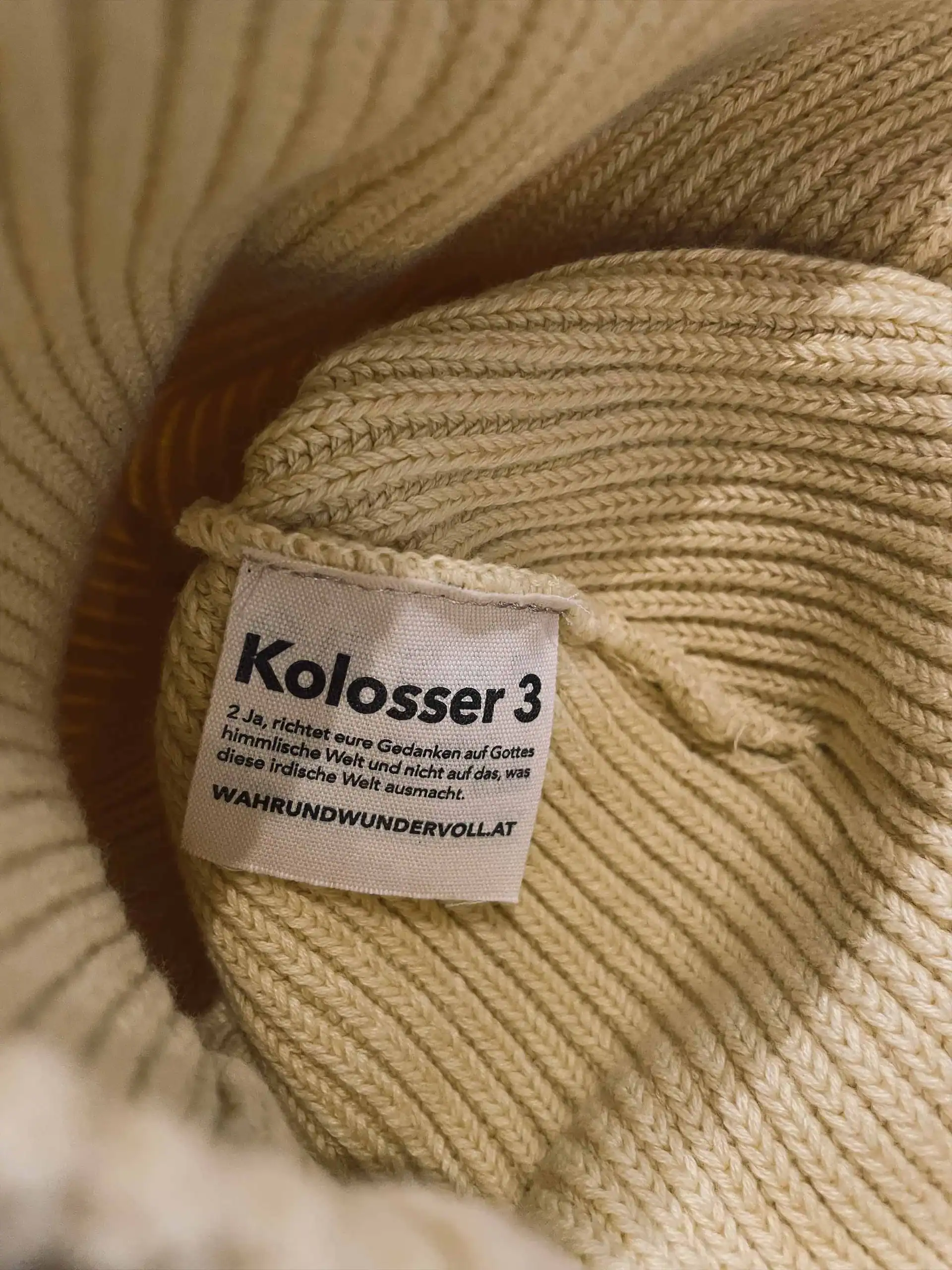 diese beanie soll dich daran erinnern, deine gedanken immer wieder bewusst auf gott zu lenken. dafür ist auf der innenseite der bibelvers kolosser 3.20 abgedruckt: ja, richtet eure gedanken auf gottes himmlische welt und nicht auf das, was diese irdische welt ausmacht.