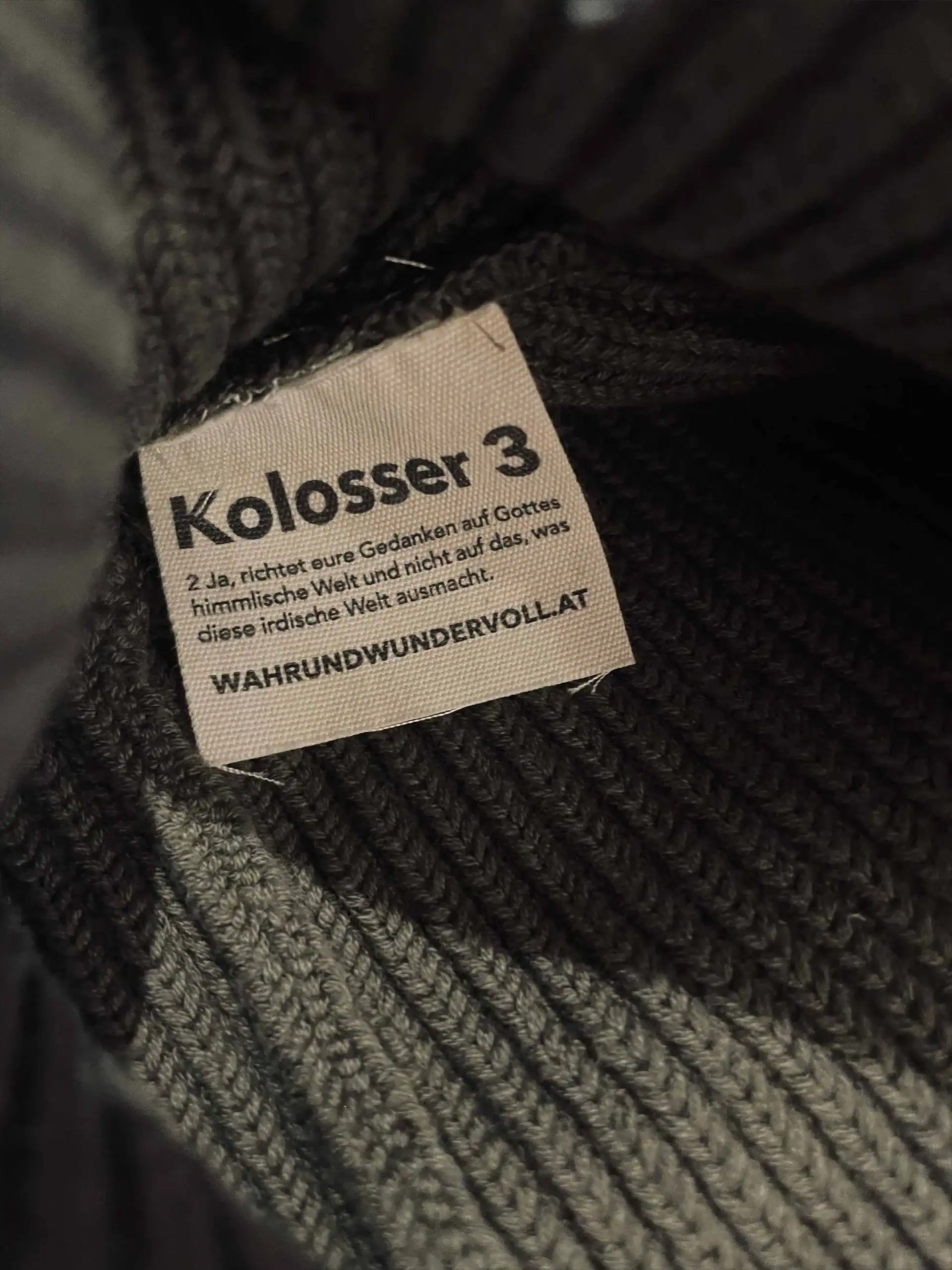 diese beanie soll dich daran erinnern, deine gedanken immer wieder bewusst auf gott zu lenken. dafür ist auf der innenseite der bibelvers kolosser 3.20 abgedruckt: ja, richtet eure gedanken auf gottes himmlische welt und nicht auf das, was diese irdische welt ausmacht.