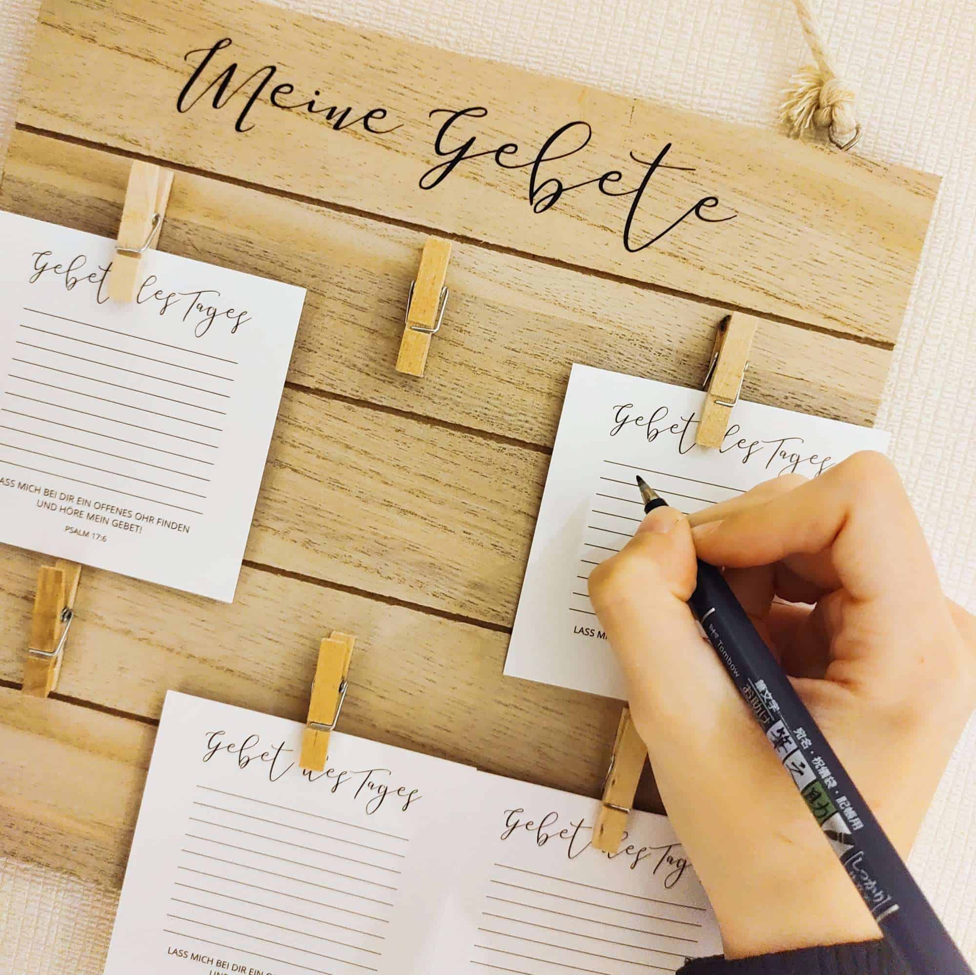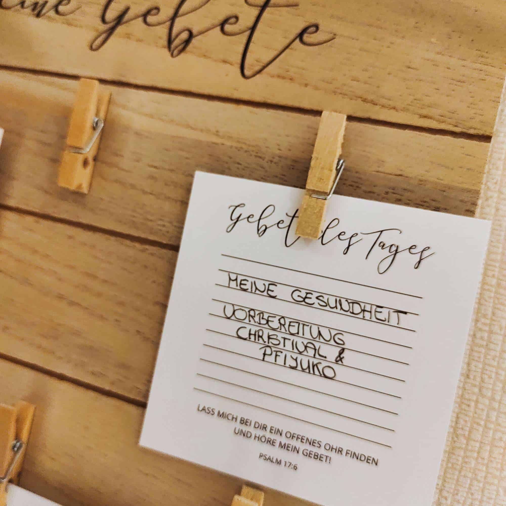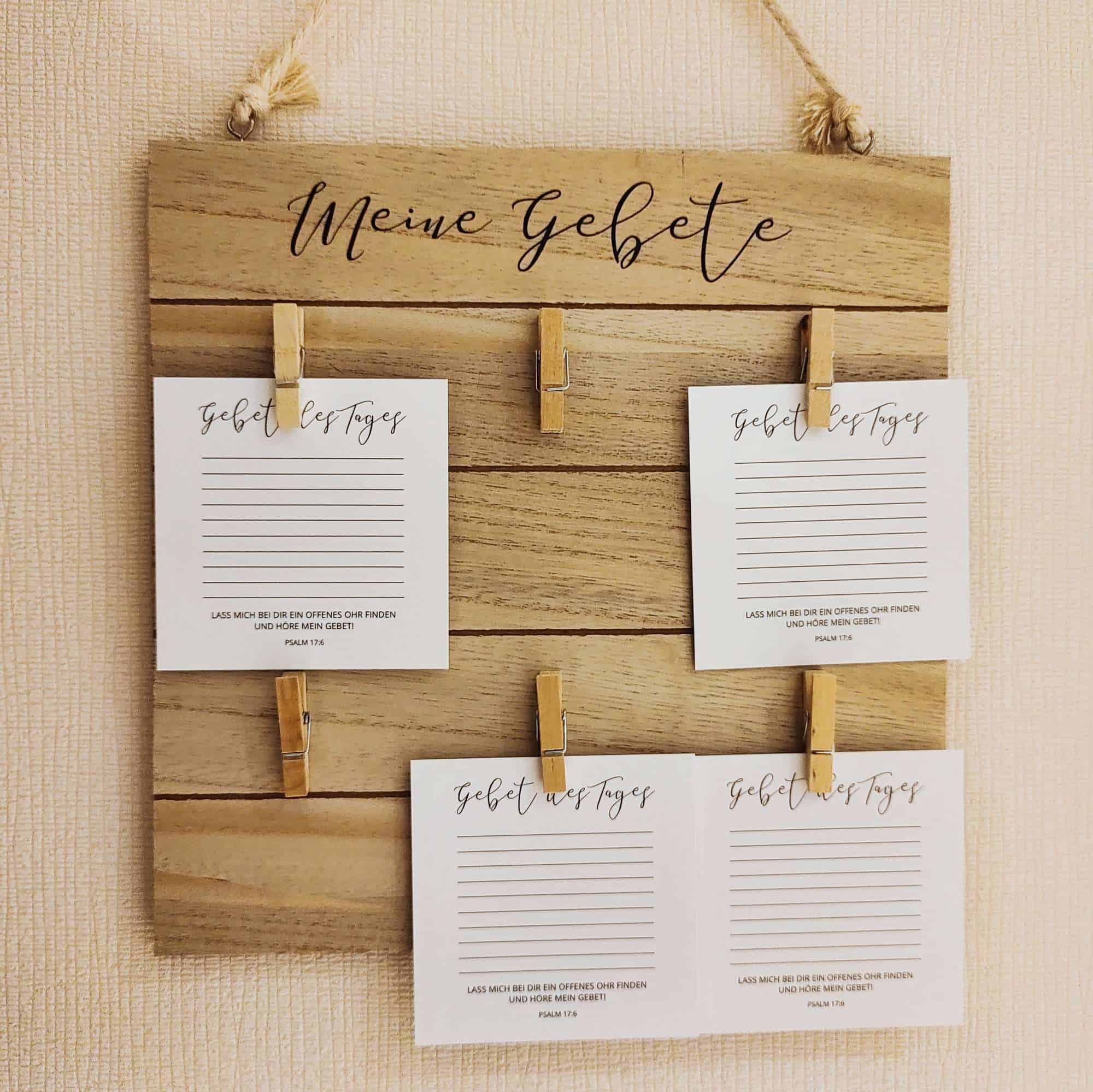 Außerdem kannst du relativ schnell sehen, ob sich vielleicht sogar etwas getan hat. Was hat Gott erhört und wo kannst du vielleicht schon einen Haken setzen? Passend zu der Gebetswand, habe ich auch noch ein 50er Pack Gebetskarten kostenlos für dich dazugelegt.