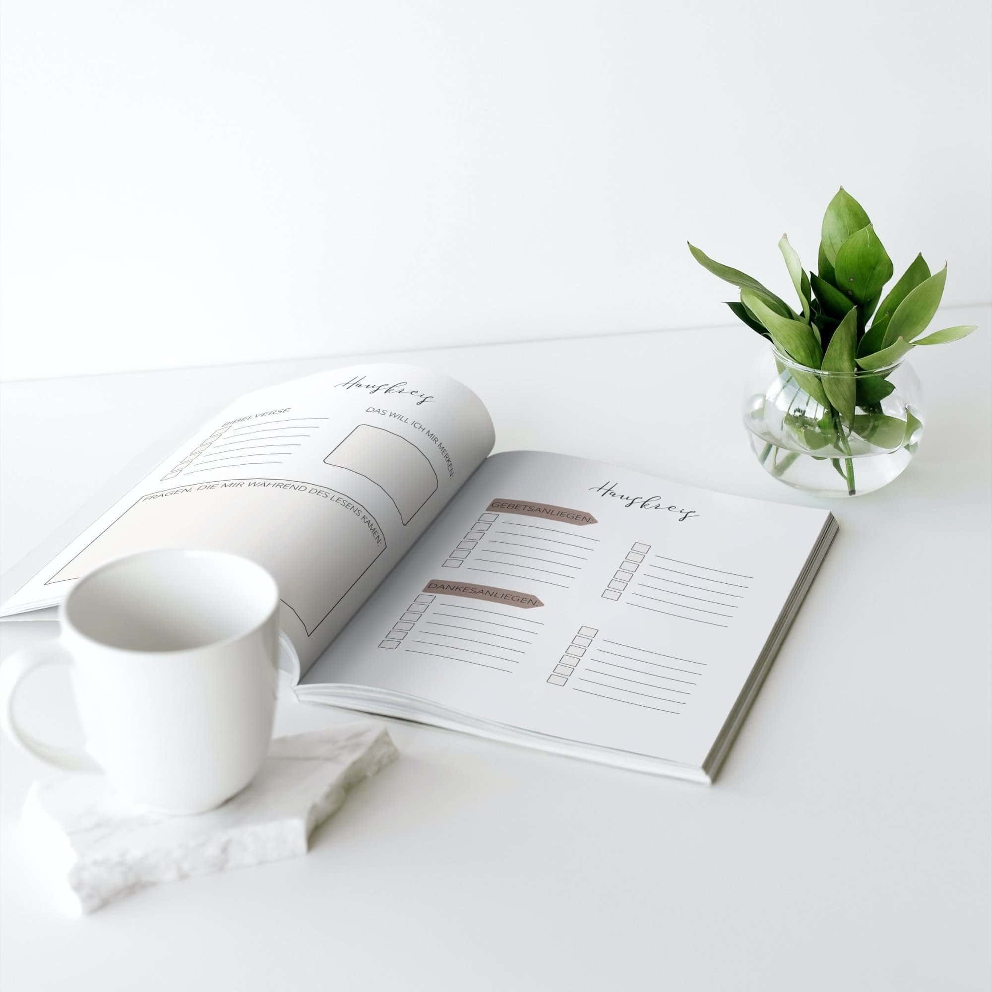 Außerdem findest du in diesem Buch unser “Buntes Bibellesen” integriert, allerdings in einer neueren Version. Der große Teil des Buches, besteht aus einer Art Notizbuch. Du hast hier für 52 Wochen, also 1 Jahr, Platz, deine Notizen zu einem Thema zu machen. Es ist so konzipiert, dass ihr 1x die Woche Hauskreis habt. Für jede Woche stehen dir 4 Seiten zur Verfügung. Du kannst Dankes- und Gebetsanliegen sammeln und abhaken. Du hast Platz für offene Fragen und du kannst dir die aktuellen Bibelverse notieren.