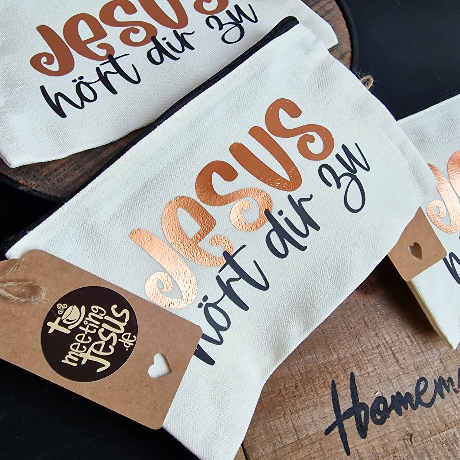 Unsere handgefertigte Federmappe mit dem inspirierenden Aufdruck “Jesus hört dir zu” ist ein besonderes Accessoire für deinen Alltag. Sie erinnert dich daran, dass du niemals allein bist und Jesus immer da ist, um dir zuzuhören und dich zu stärken.