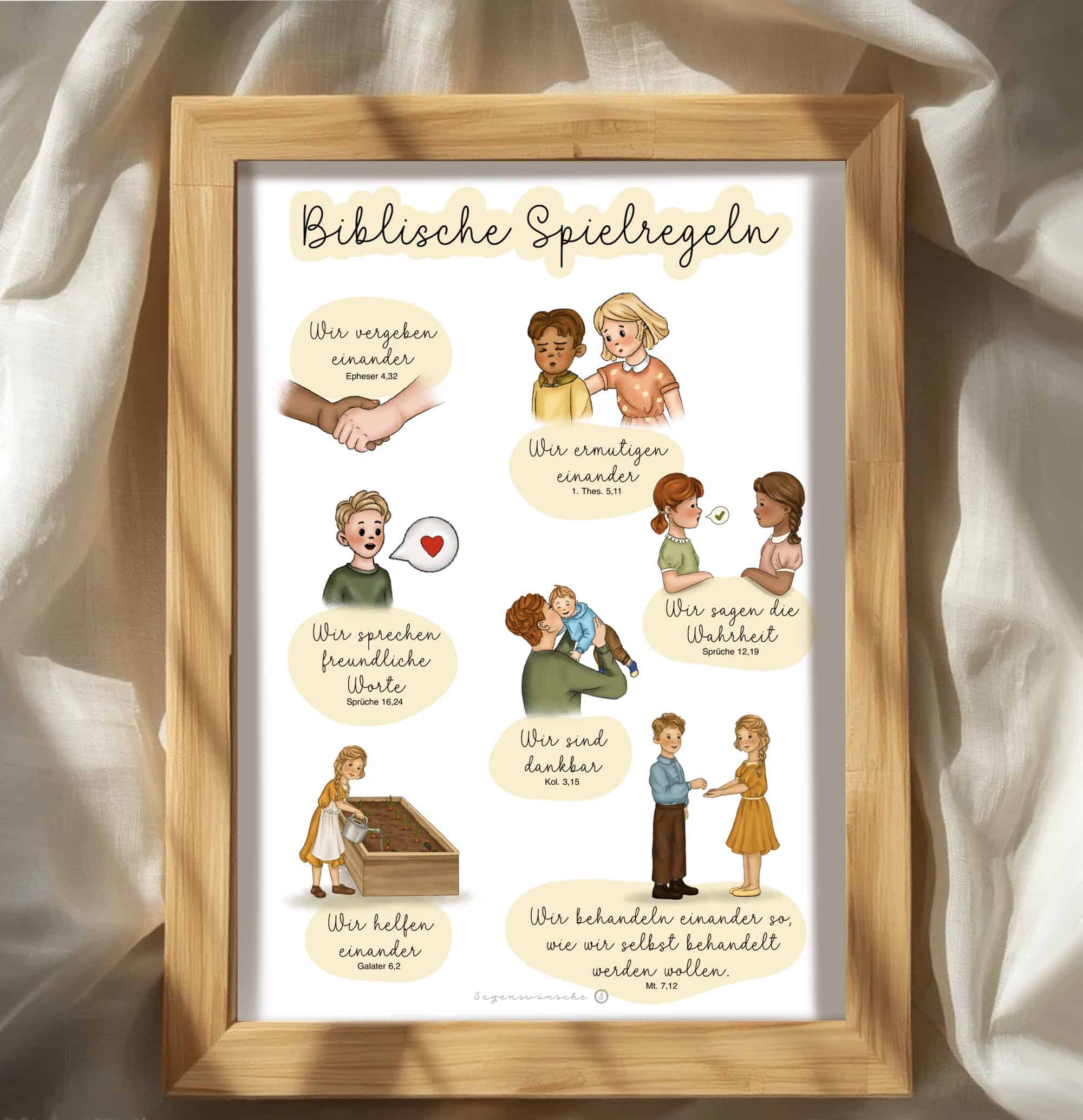 Biblische Spielregeln – Poster für Kinderzimmer & Familie