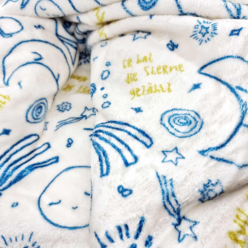 Kuscheldecke im handgezeichneten Sanktwerk Design mit dem Bibelvers: “Er hat die Sterne gezählt und nennt sie alle beim Namen” (Psalm 147,4)