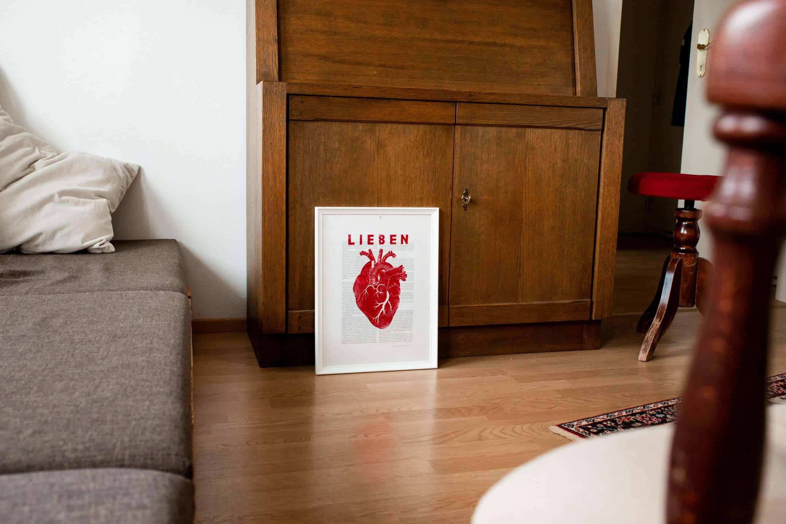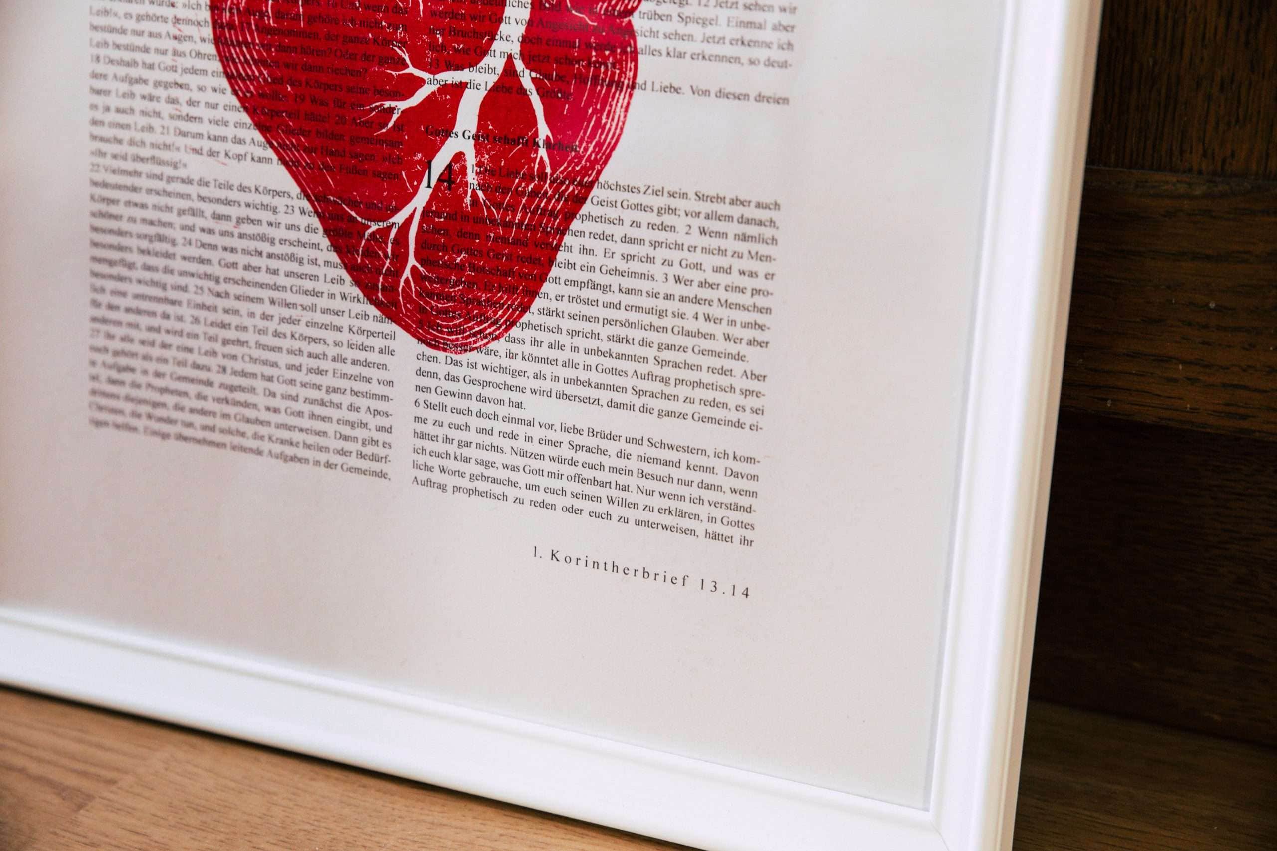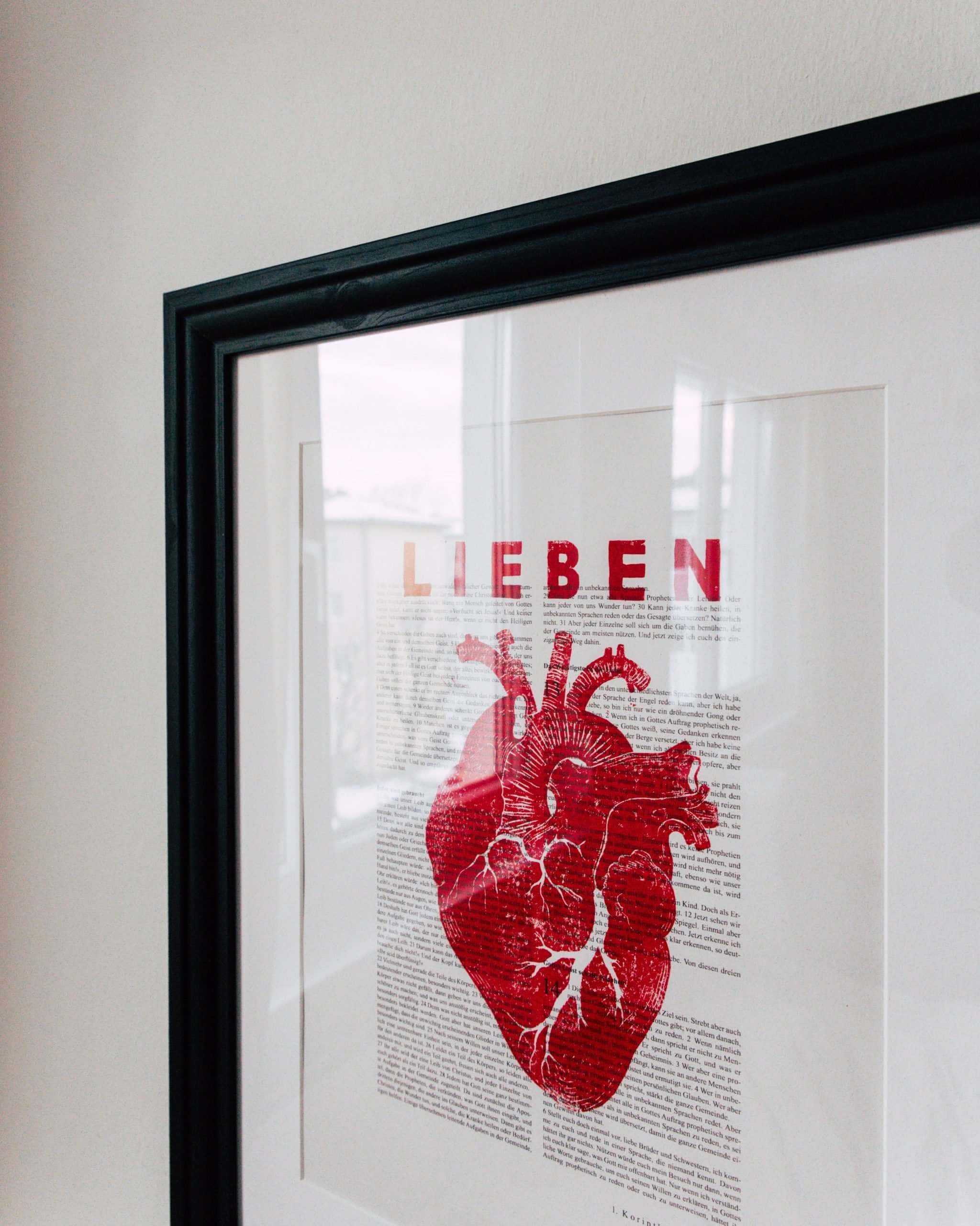 Christlicher Kunstdruck auf Art Prints: LIEBEN. dieser Kunstdruck soll dich ermutigen in deinem persönlichen Umfeld immer noch mehr Liebe zu geben, weil Liebe das Allergrößte ist. das Herz erinnert an den neuen Geist und das lebendige Herz, das Gott dir geschenkt hat. / Hesekiel 36.26