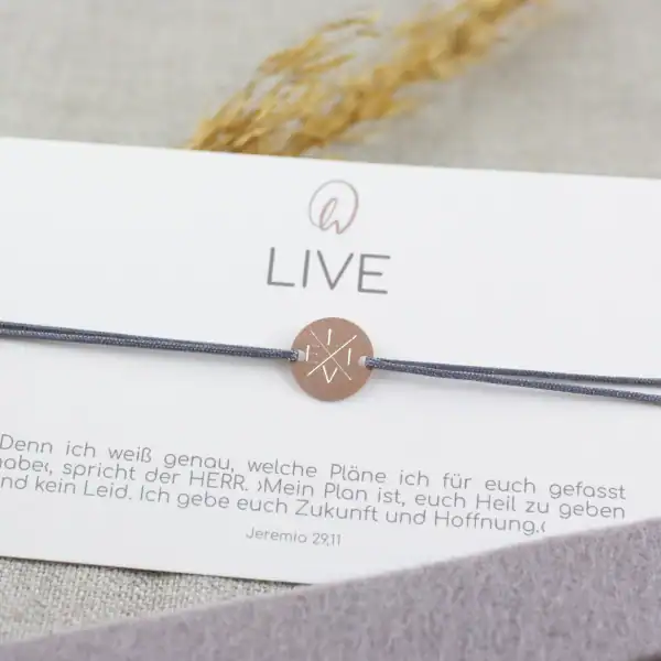 Eine kleine Erinnerung im Alltag. Immer sichtbar an deinem Handgelenk. Das kleine Armband macht nicht nur gute Laune, sondern trägt auch eine wertvolle Botschaft – hört nicht auf zu lieben! Frei nach Jeremia 29,11 – ›Denn ich weiß genau, welche Pläne ich für euch gefasst habe‹, spricht der HERR. ›Mein Plan ist, euch Heil zu geben und kein Leid. Ich gebe euch Zukunft und Hoffnung.‹