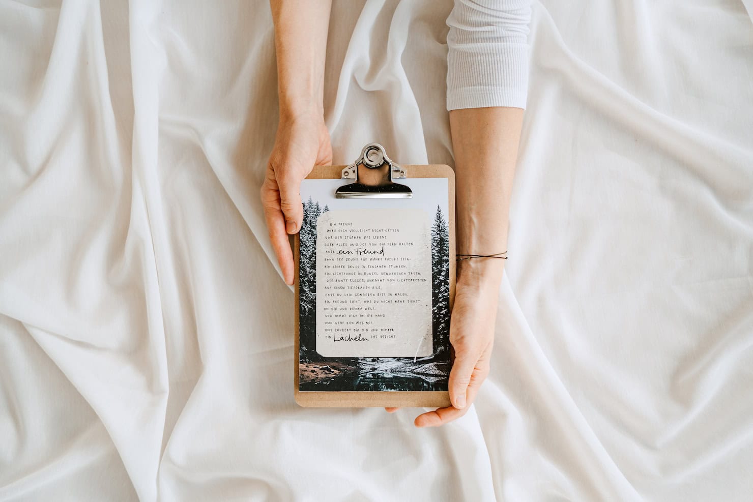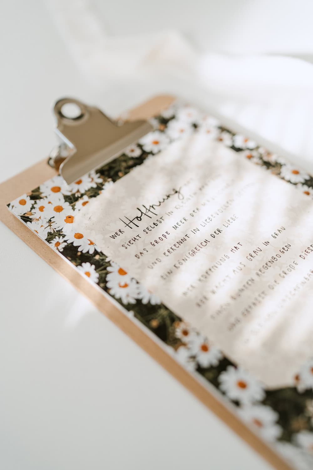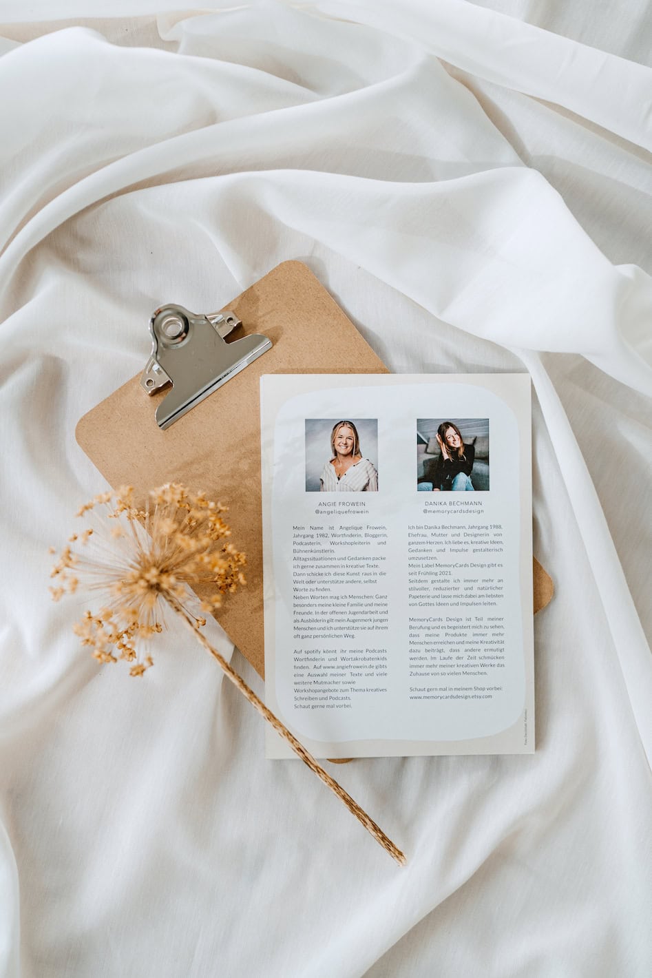 Die insgesamt 13 Seiten können auf dem Klemmbrett befestigt werden, was ihr entweder aufstellen oder aufhängen könnt.