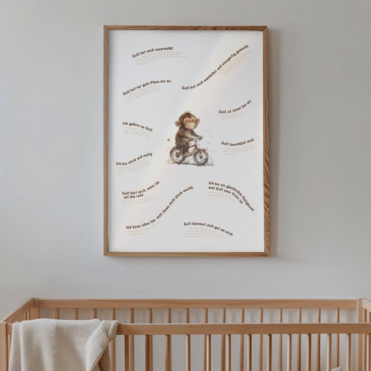 Dieses liebevoll gestaltete Wandbild voller ermutigender christlicher Botschaften für Kinder möchte dazu beitragen, dass junge Herzen mit wichtigen Glaubenswahrheiten aufwachsen. Jedes Kind ist unendlich von Gott geliebt, und er möchte es behüten, versorgen und seine Wahrheit tief in sein Herz pflanzen.
