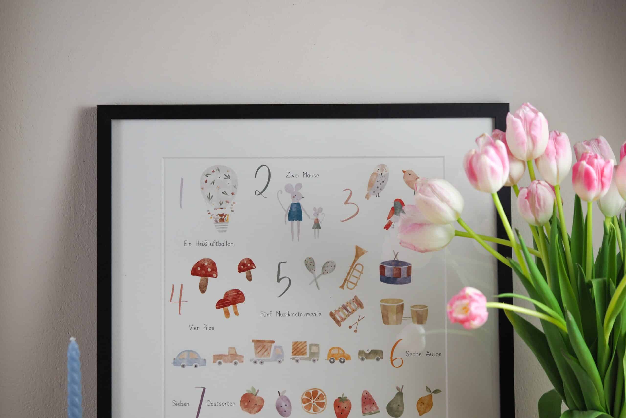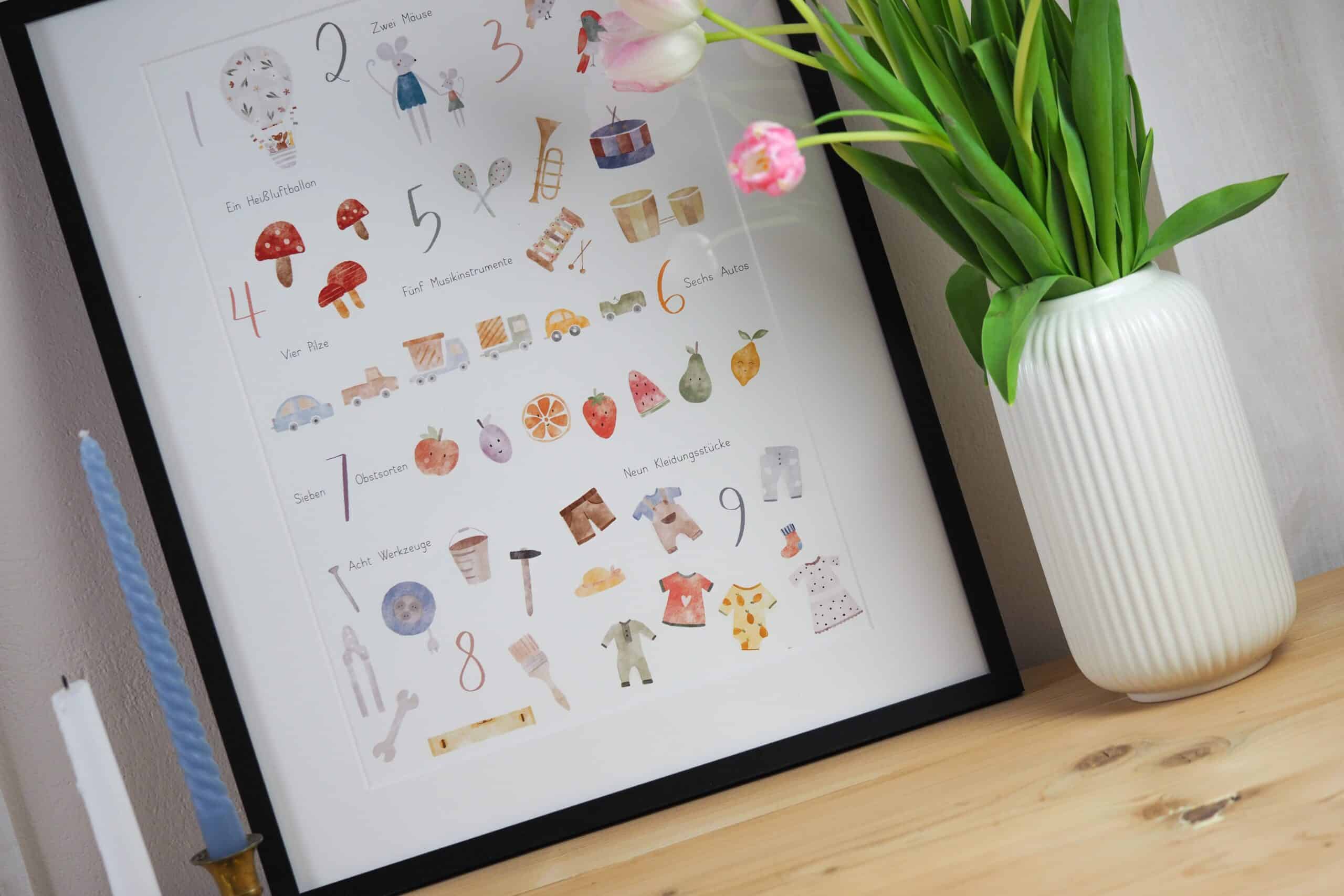 Das perfekte Poster fürs Kinderzimmer, mit dem deine Kids spielerisch zählen lernen können.