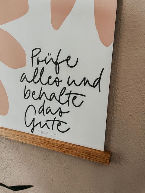 Poster zur Jahreslosung 2025 aus 1. These. 5,21. Prüfe alles und behalte das Gute! Das moderne Design in harmonischen Farben macht es zu einem stilvollen Blickfang in jedem Raum – sei es zu Hause, im Büro oder in den Gemeinderäumen. Ob für dich selbst oder als Geschenk: Dieses Poster erinnert dich täglich daran, auf das Wesentliche zu schauen und Gottes Gegenwart in deinem Leben zu suchen.