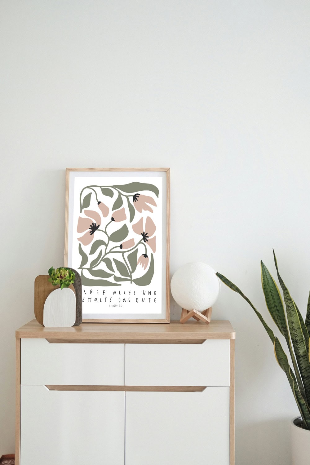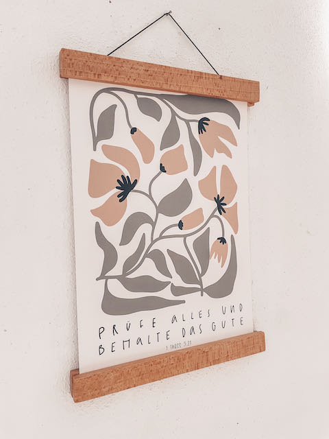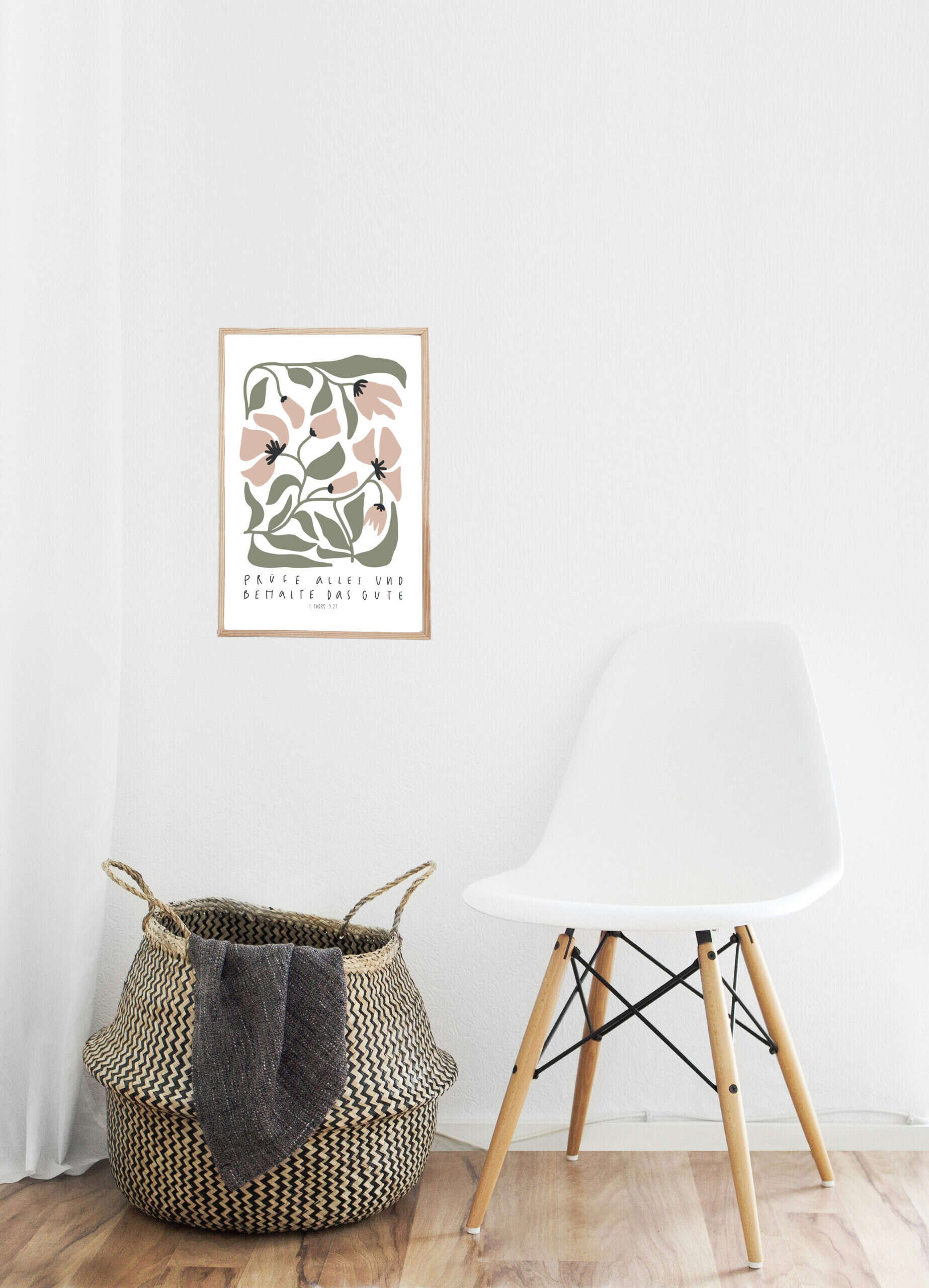 Poster zur Jahreslosung 2025 aus 1. These. 5,21. Prüfe alles und behalte das Gute! Das moderne Design in harmonischen Farben macht es zu einem stilvollen Blickfang in jedem Raum – sei es zu Hause, im Büro oder in den Gemeinderäumen. Ob für dich selbst oder als Geschenk: Dieses Poster erinnert dich täglich daran, auf das Wesentliche zu schauen und Gottes Gegenwart in deinem Leben zu suchen.