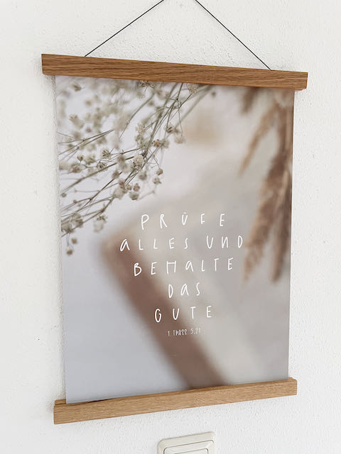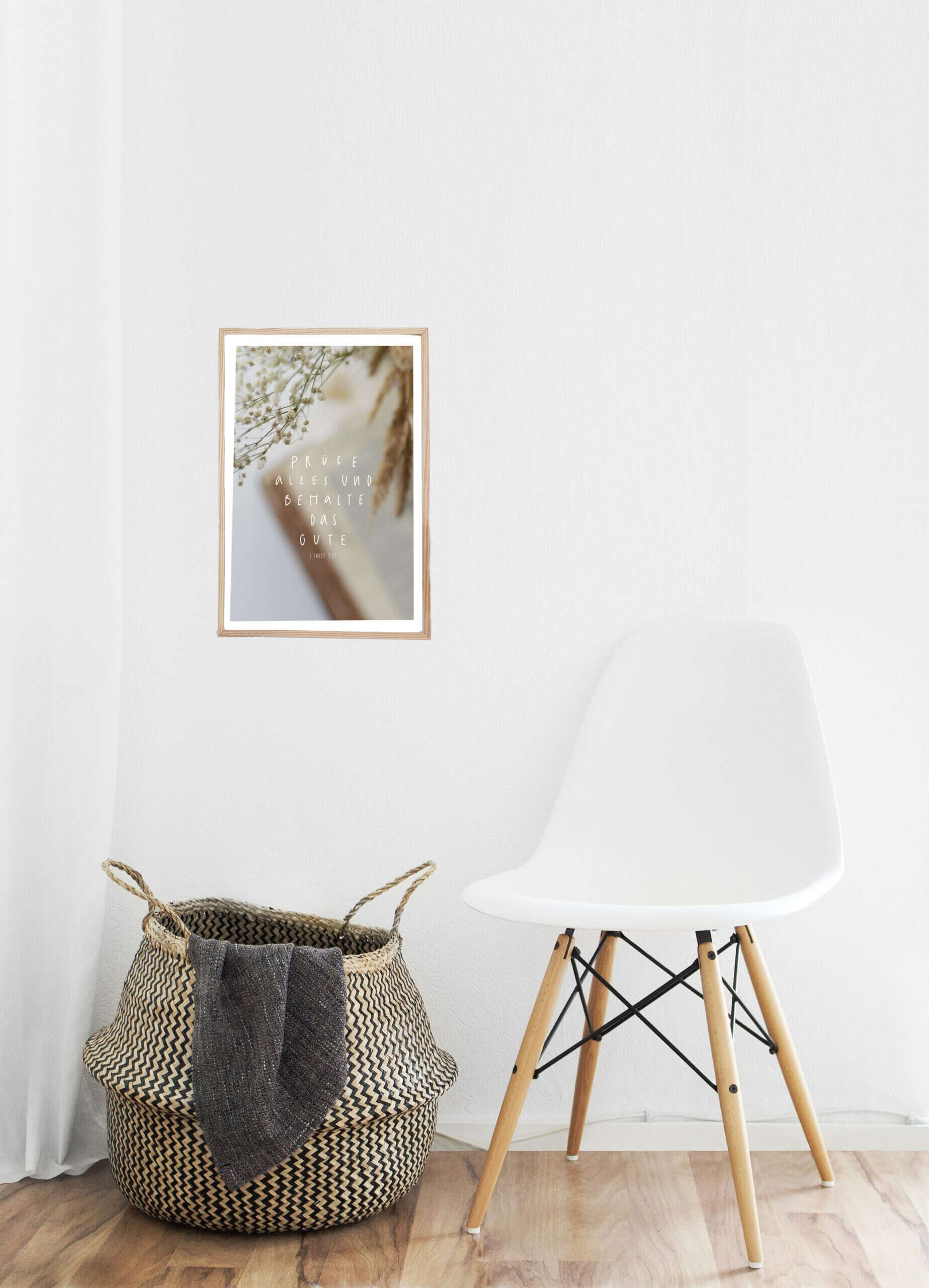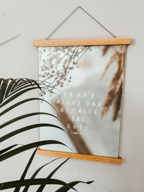Poster zur Jahreslosung 2025 aus 1. These. 5,21. Prüfe alles und behalte das Gute! Das moderne Design in harmonischen Farben macht es zu einem stilvollen Blickfang in jedem Raum – sei es zu Hause, im Büro oder in den Gemeinderäumen. Ob für dich selbst oder als Geschenk: Dieses Poster erinnert dich täglich daran, auf das Wesentliche zu schauen und Gottes Gegenwart in deinem Leben zu suchen.