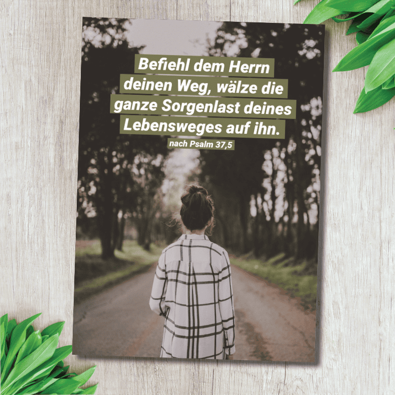 Text: Befiehl dem Herrn deinen Weg, wälze die ganze Sorgenlast deines Lebensweges auf ihn (nach Psalm 37,5)