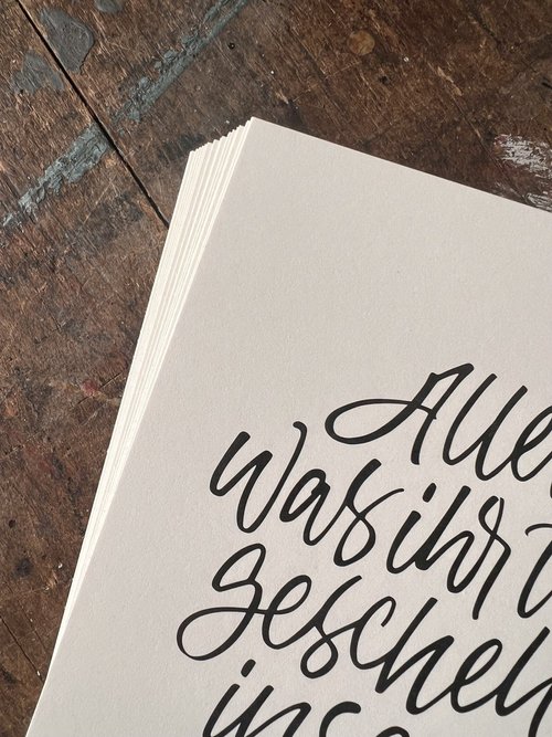 Postkarte auf 400 Gramm Naturpapier, ohne Umschlag.