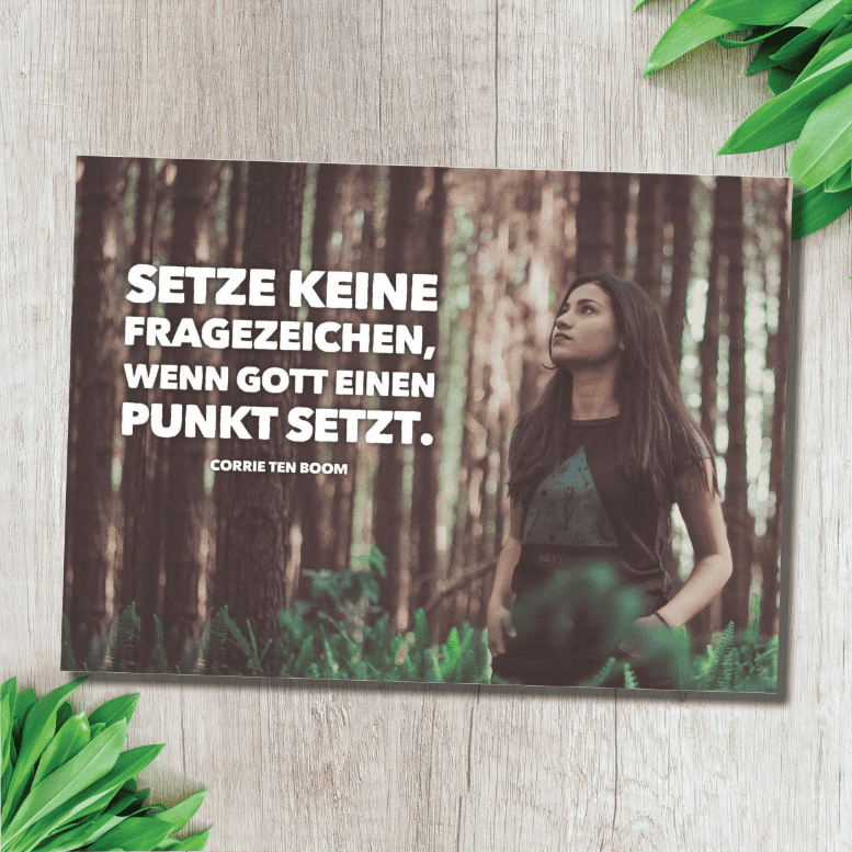 Text: Setze kein Fragezeichen, wenn Gott einen Punkt setzt. (Corrie Ten Boom)
