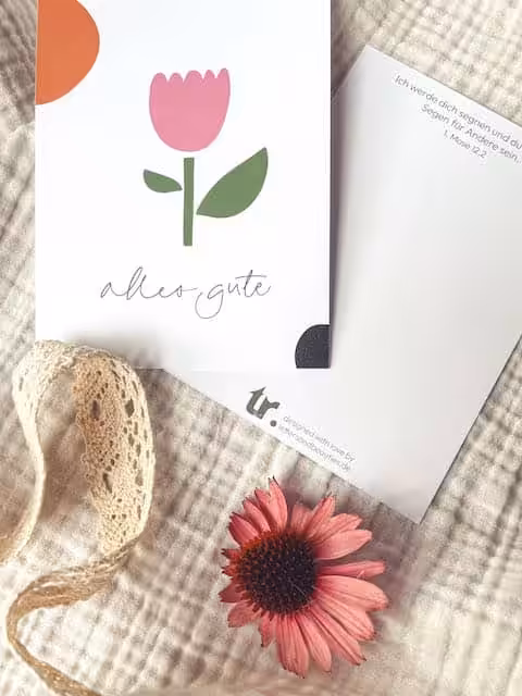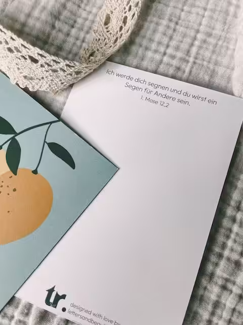 DIN A 6 – Rückseite mit Bibelvers aus 1. Mose 12,2: Ich werde dich segnen und du wirst ein Segen für Andere sein.