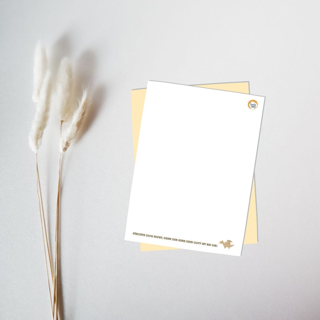 Rückseite weiß mit kleinem Logo rechts oben und dem Vers „Fürchte dich nicht, denn der Herr dein Gott ist bei dir.“