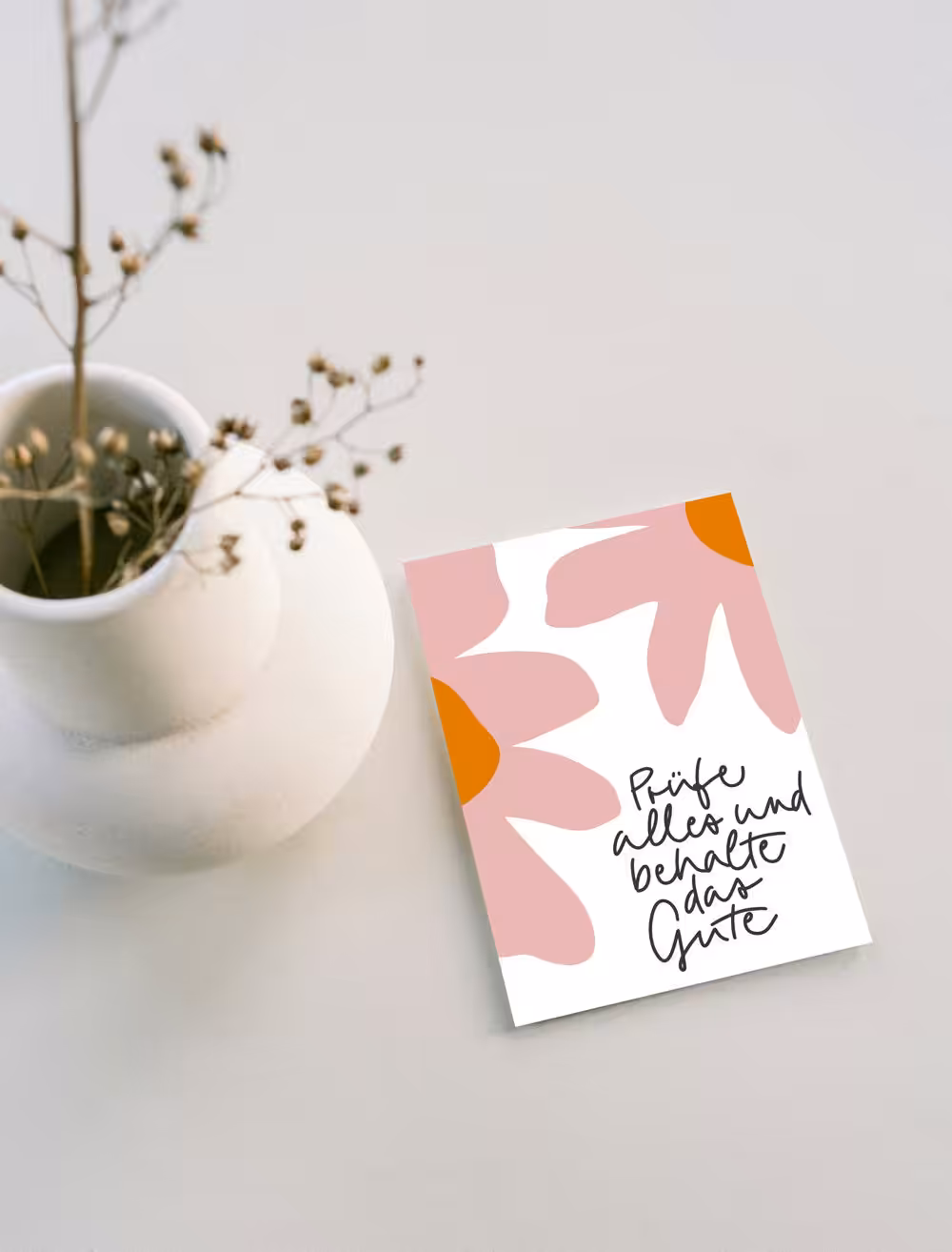 Postkartenset bestehend aus 3 verschiedenen Motiven zur Jahreslosung 2025: Prüfe alles und behalte das Gute.