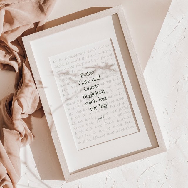 Dieses wunderschön gestaltete Poster bringt die tiefen Worte von Psalm 23 direkt in dein Zuhause.