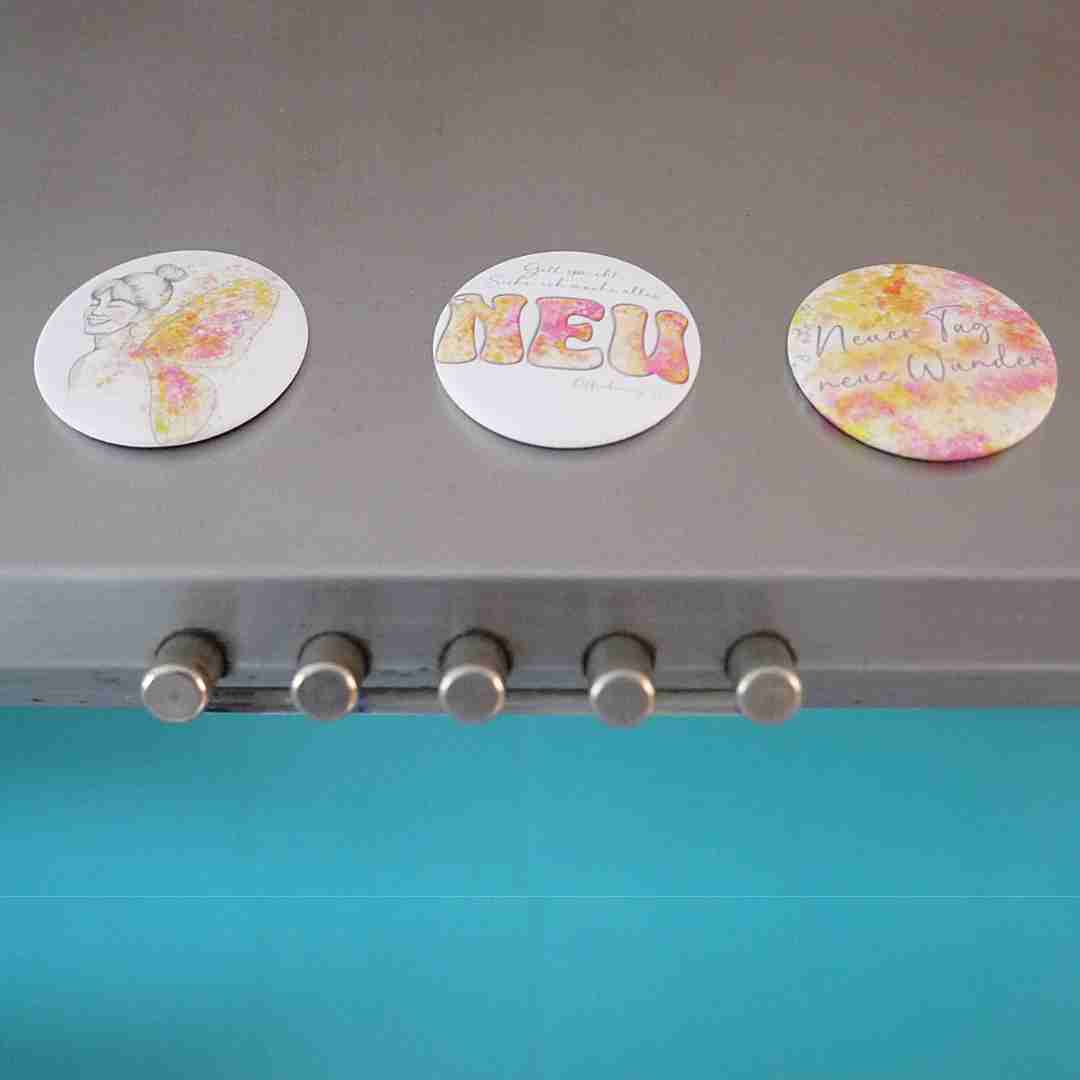 3 Hochwertige Magnetbuttons Ø 38 mm, 4/0 farbig einseitig bedruckt, MATT foliert, kratzfest und schmutzabweisend